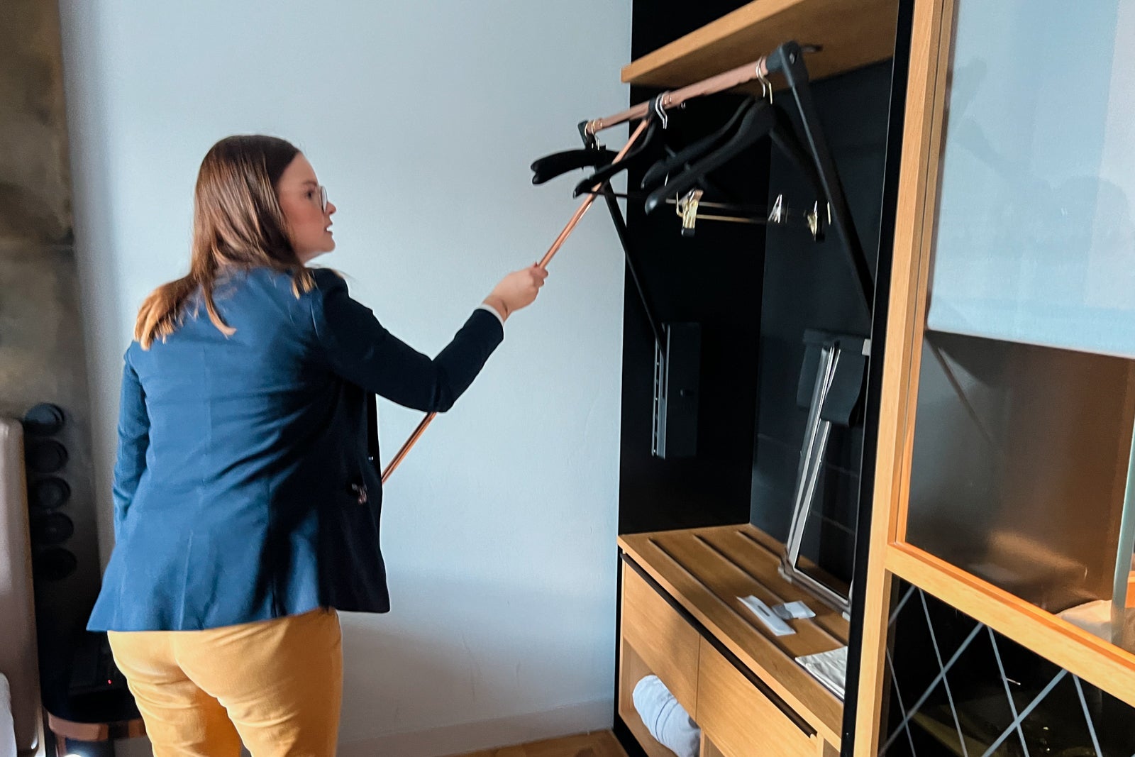 Those rooms have wider-than-average doorways, lower beds, bathrooms with stability bars, roll-in showers and closets with pull bars to pull the rack down for easy access. Since Andaz is a fairly new construction, the entire hotel is easily accessible for those using mobility assistance devices, with wide doorways and few steps.