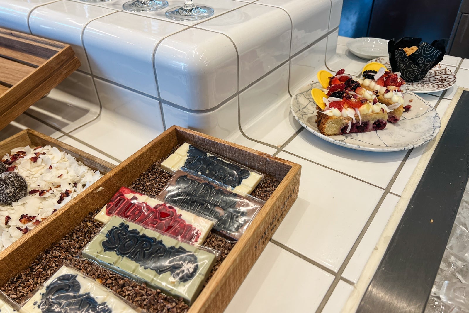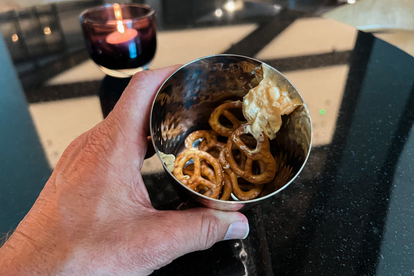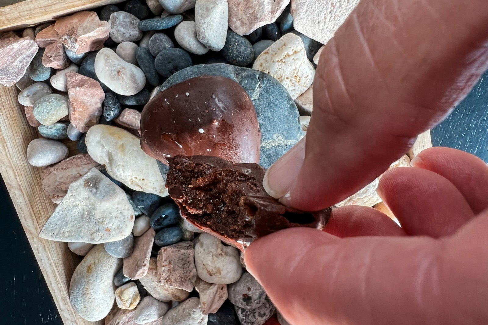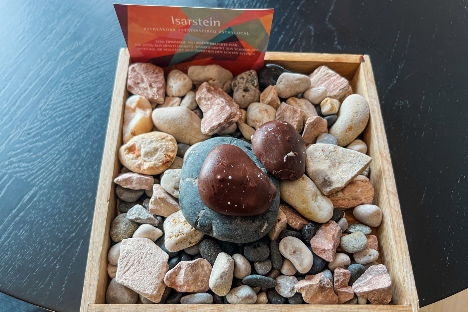 When I arrived, an intriguing welcome amenity awaited me at the small dining table in my suite. At first, it seemed to be a rock garden. However, camouflaged among the rocks were a few tasty chocolates.