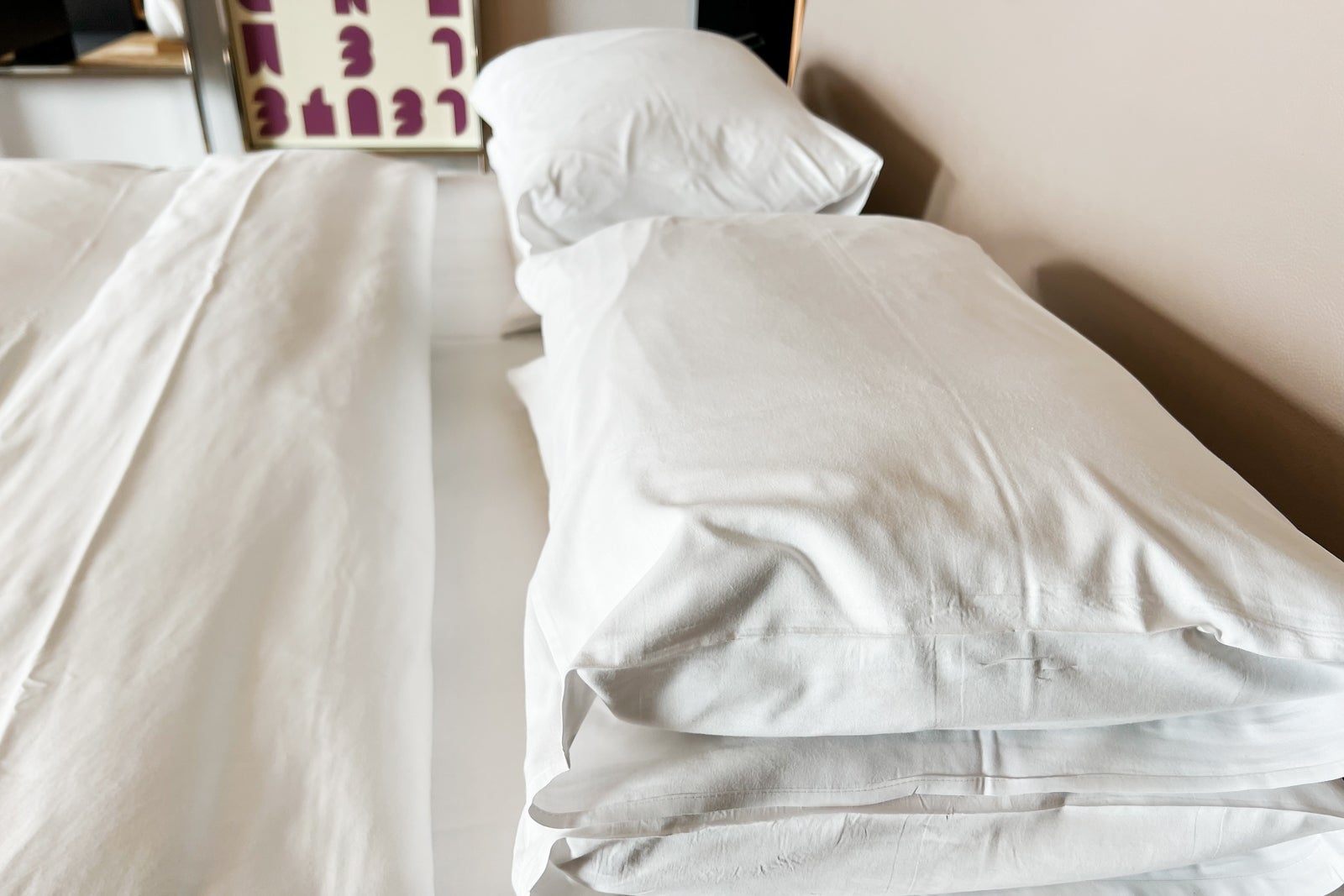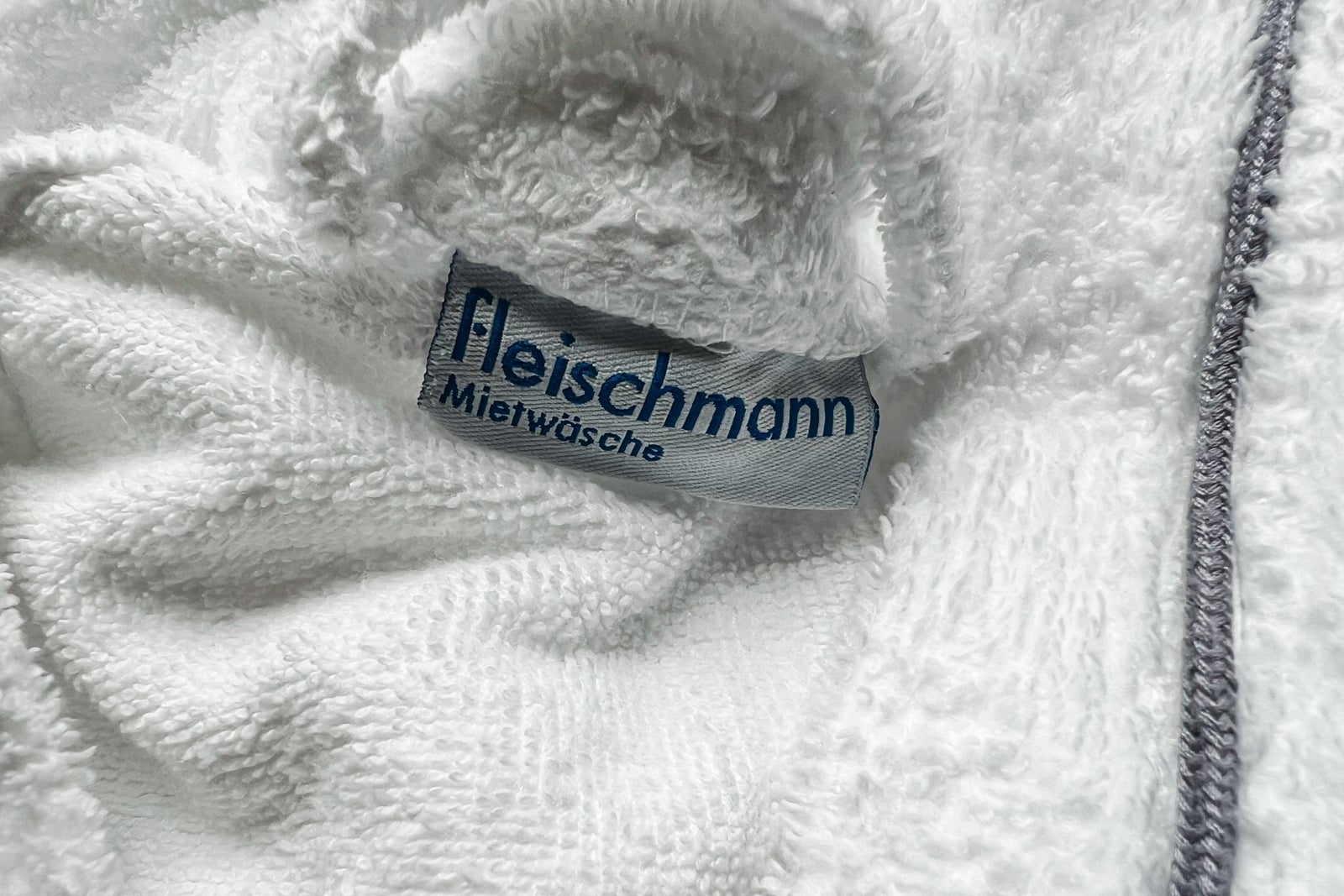 The bed was very comfy, with crisp white linens from Andaz's brand. The robes were by a German brand labeled Fleischmann Mietwasche.