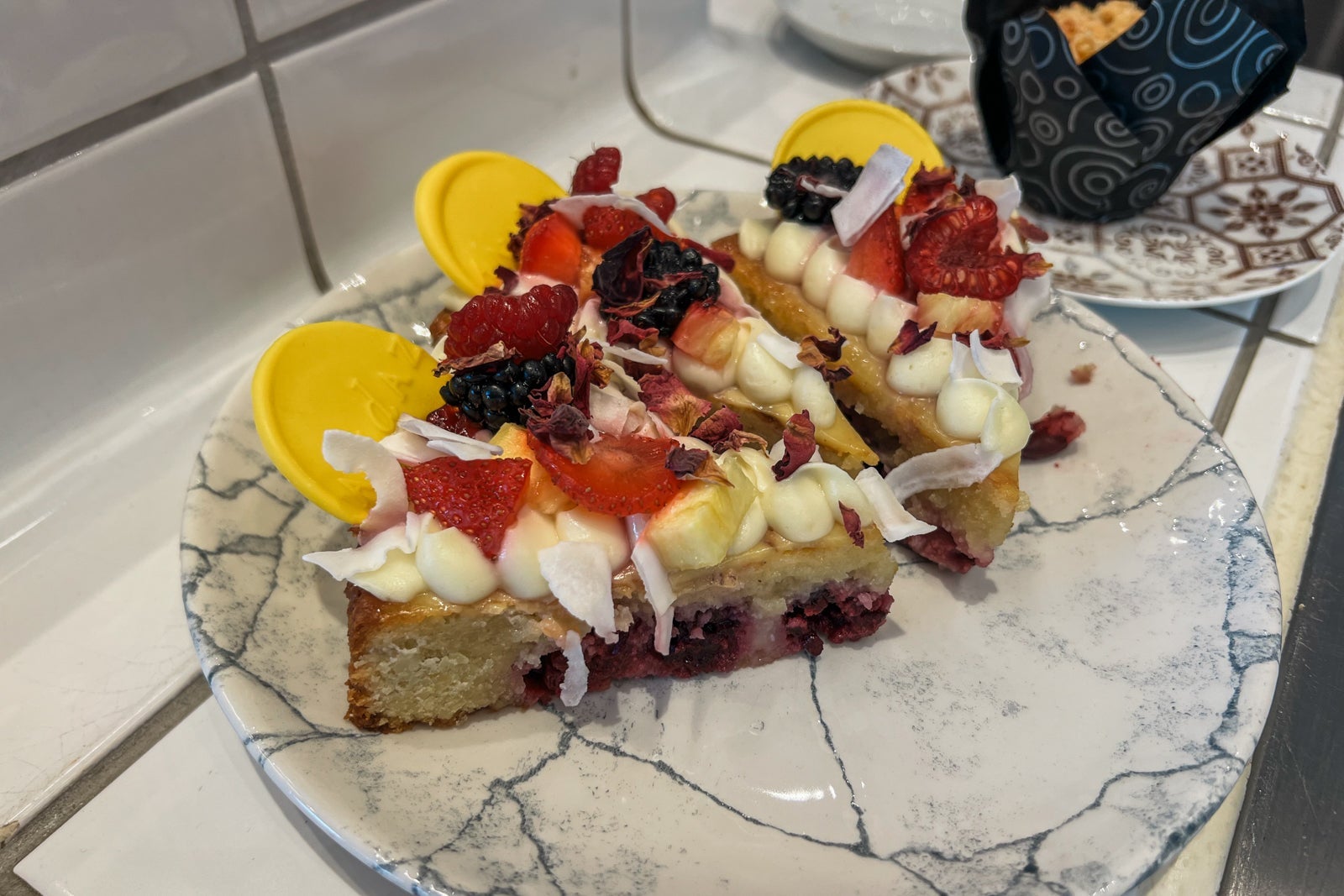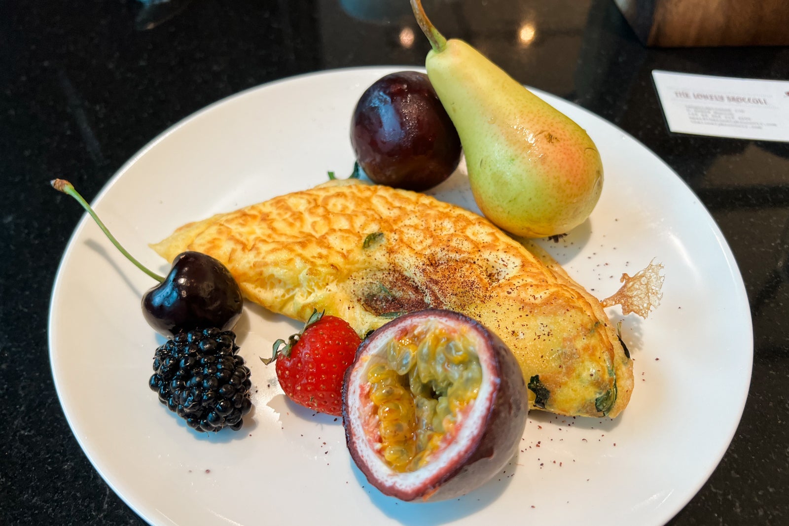 I had the wagyu beef burger with a side of fries ($35). The burger was cooked well, though I wasn't a huge fan of the onion jam. It hit the spot. I topped it off with a plum dessert that I picked up earlier from the hotel's coffee bar. I'd tell you how much it was, but they let me take it for free when I stopped by since they were closing up for the day. This unexpected treat was just the right amount of sweet and tart.