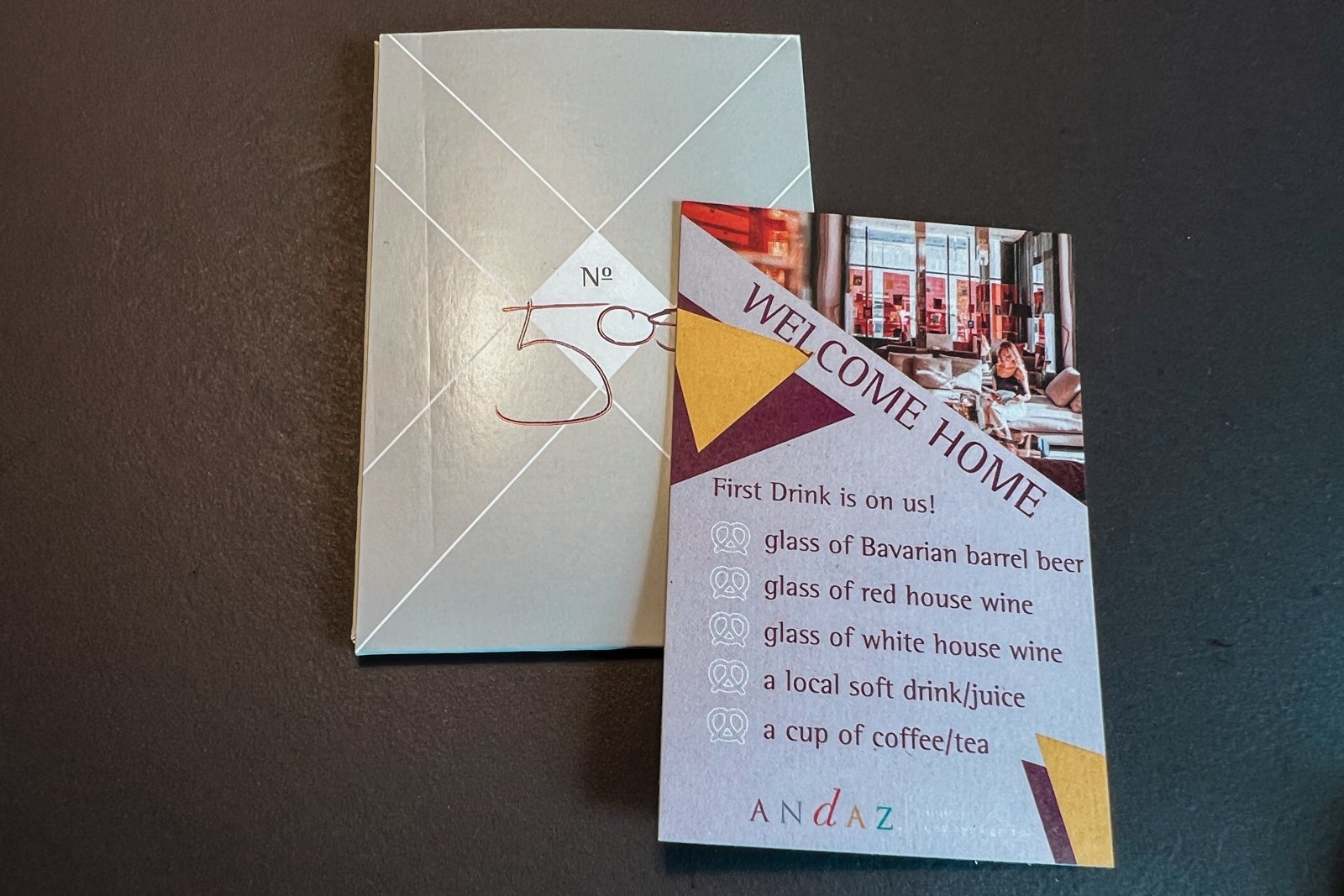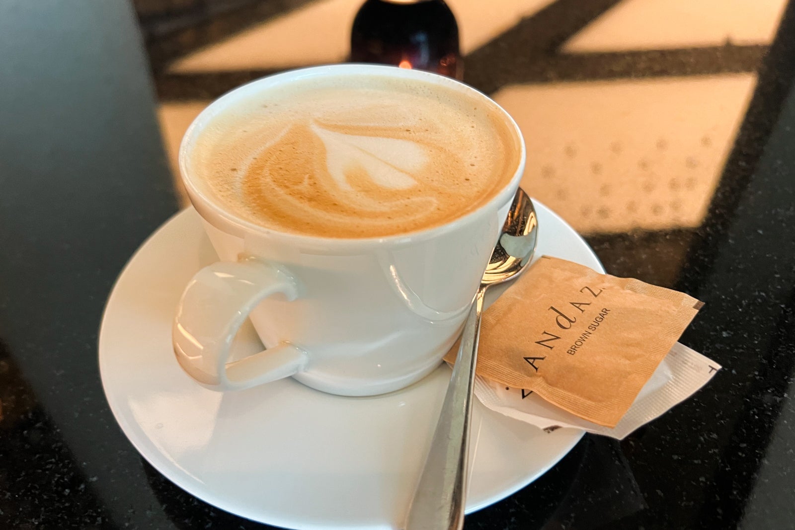The friendly woman at one of the kiosks handed me a "Welcome Home" card with a "First drink is on us!" message. Guests can get a beverage of their choice during their stay for free. I had a cappuccino on the house.