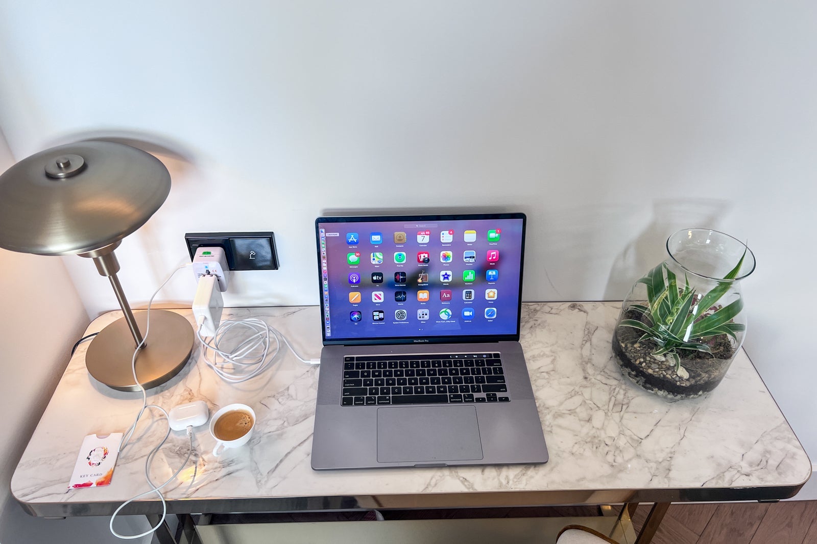 - The workspace in the junior suite felt cramped, even working with a relatively compact MacBook Pro.