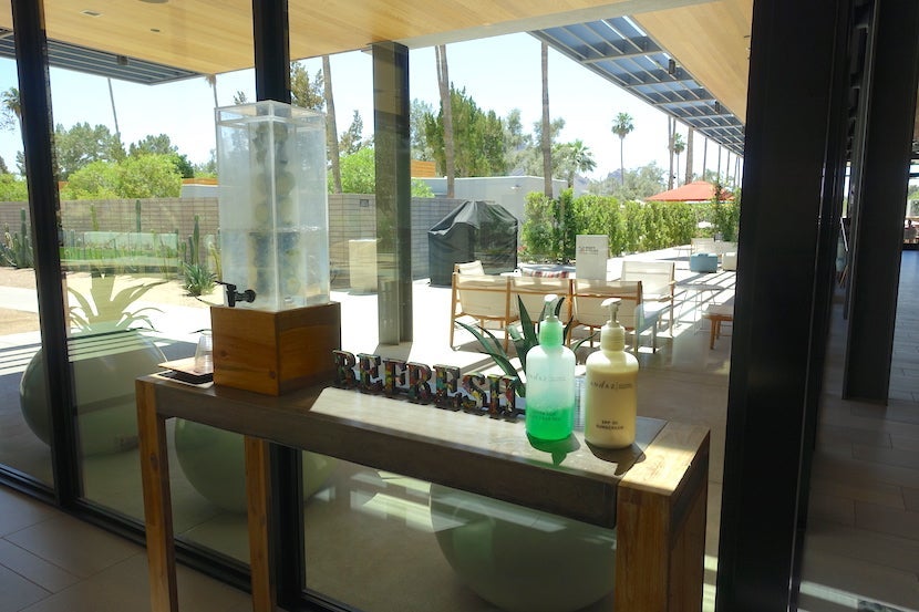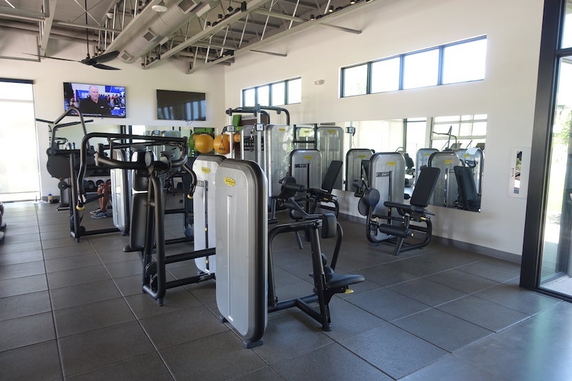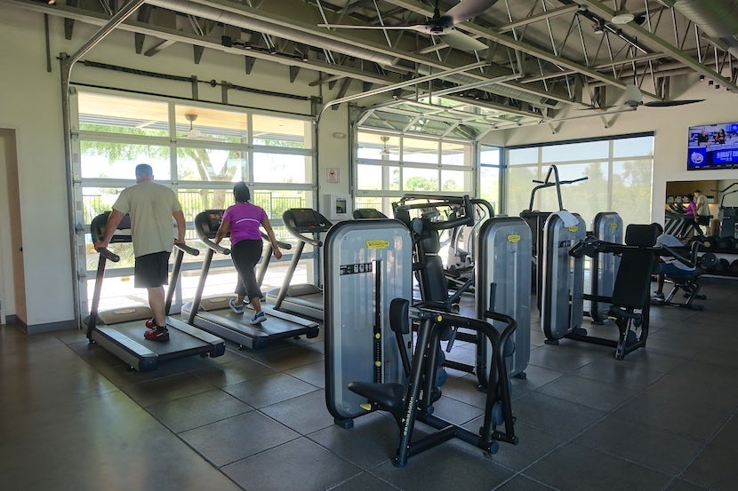 The fitness center and Palo Verde Spa were at the other southern end of the property. The gym was in what looked like a former garage, with glass doors that could be raised or lowered to let in fresh air.