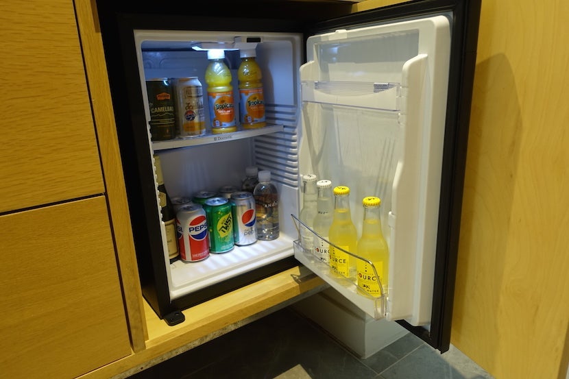 My Knoll room was 420 square feet, which is 65 square feet bigger than the starter Eames rooms. Just inside the entrance was the minibar, with a variety of snacks and candy.