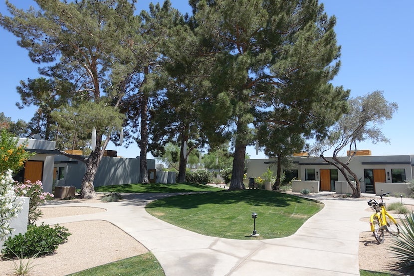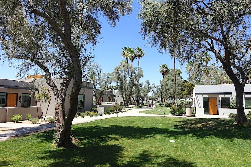 Rather than rooms in a single large building, the Andaz's 201 accommodations are spread out across many smaller single-story buildings with five or six rooms each. I would describe the aesthetic as midcentury modern adobe. In fact, the 25-acre property used to be a resort called Cottonwoods, which was built in 1980, and Hyatt retained the footprint of the bungalows but built an all-new main building for the lobby and restaurant, plus conference rooms, a spa and two swimming pools.