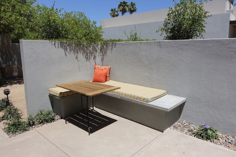 My Knoll room (named after architect and designer Florence Knoll, who emphasized open, uncluttered layouts — think "Mad Men") was in the back one of the buildings closest to the lobby, so my private-entry courtyard faced a wall with an A/C unit on it.