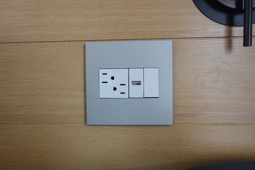Next to the bed were power and USB outlets — it's great to have both AC and USB outlets so close to the bed.