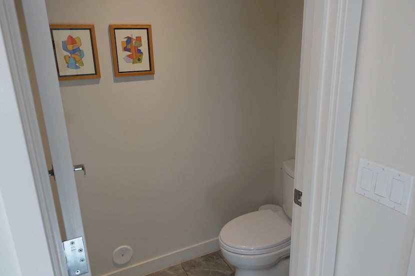 The WC had the toilet and two small paintings by artist Larry Passey.