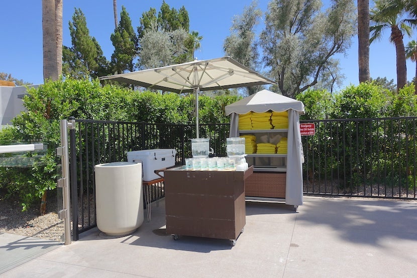 I especially liked the station near the entrance where staff members placed clean towels and refreshed trays of ice water and bottles of sunscreen and aloe vera that guests could help themselves to.