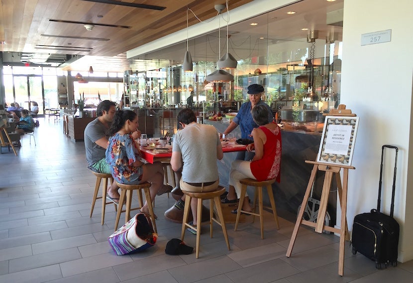 I didn't eat here, but the breakfast menu had items like chilaquiles, avocado toast, Belgian waffles and Greek yogurt with chia seeds, while the dinner menu was a mix of small plates, like smoked salmon rillettes and goat-cheese dumplings, and larger dishes like a grilled flat-iron steak with mole sauce and seared scallops with a potato-corn emulsion.