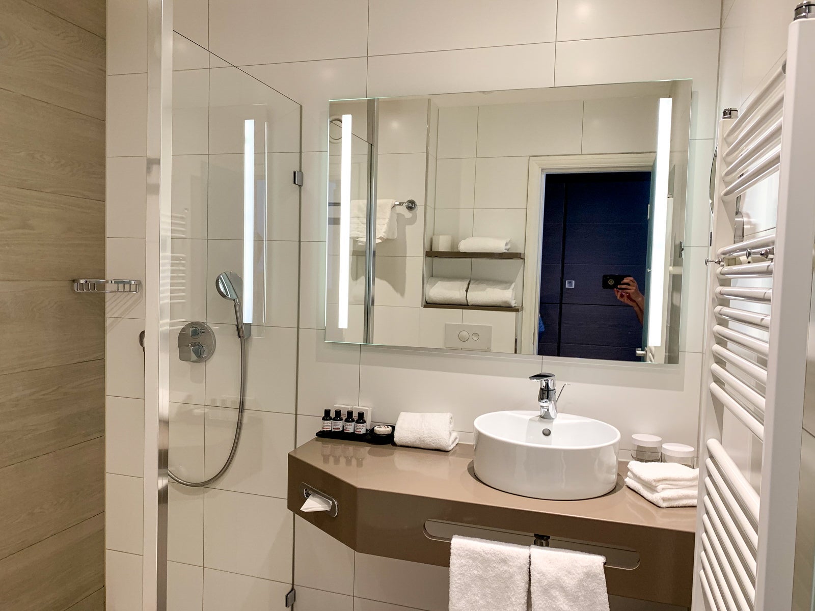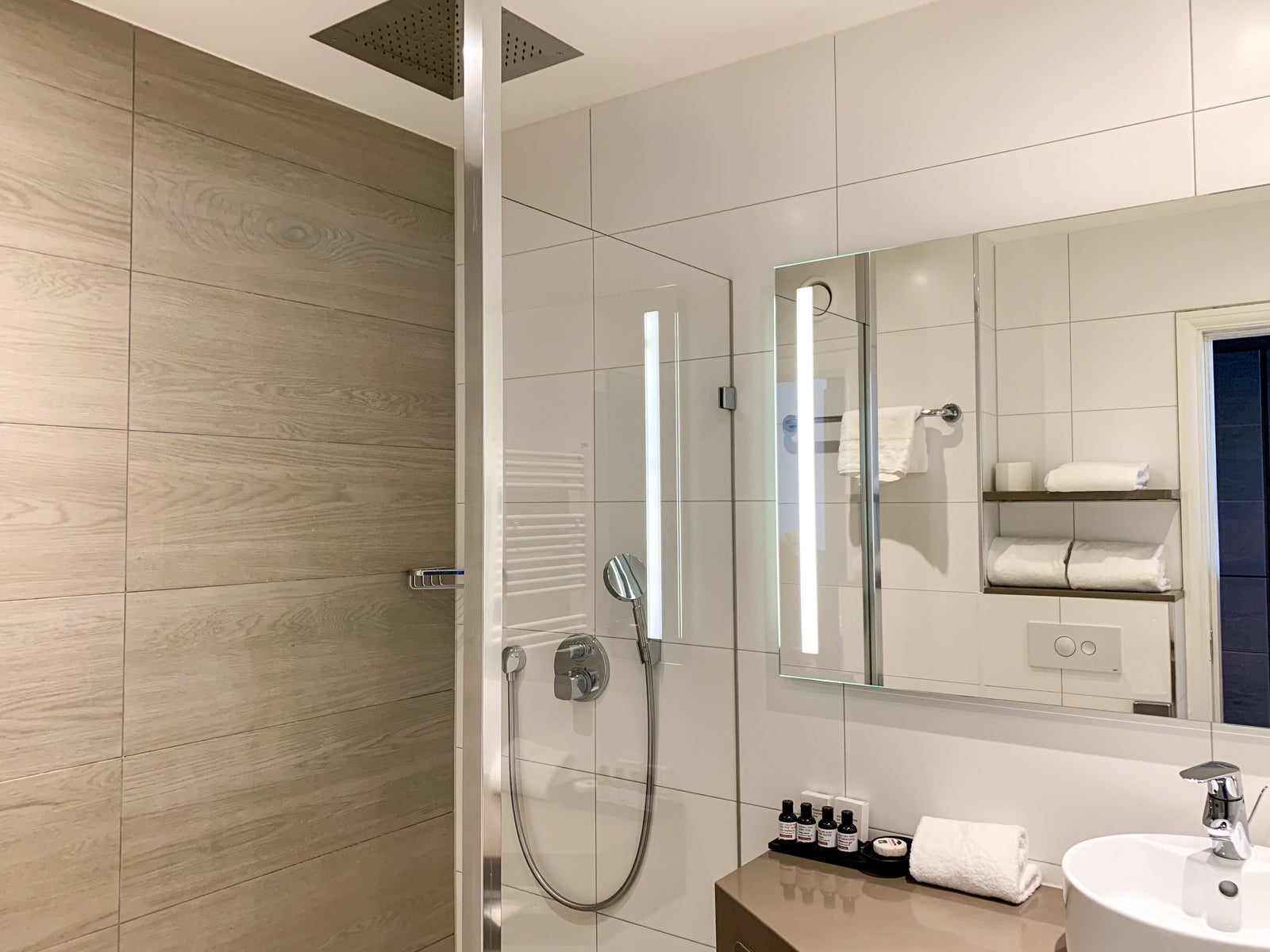 There was only a half wall separating the shower from the rest of the bathroom, so the floor flooded every time one of us showered. While I understand that this design is popular in Europe, I wished they'd faced it the other way so the area under the sink would've flooded instead of the toilet.