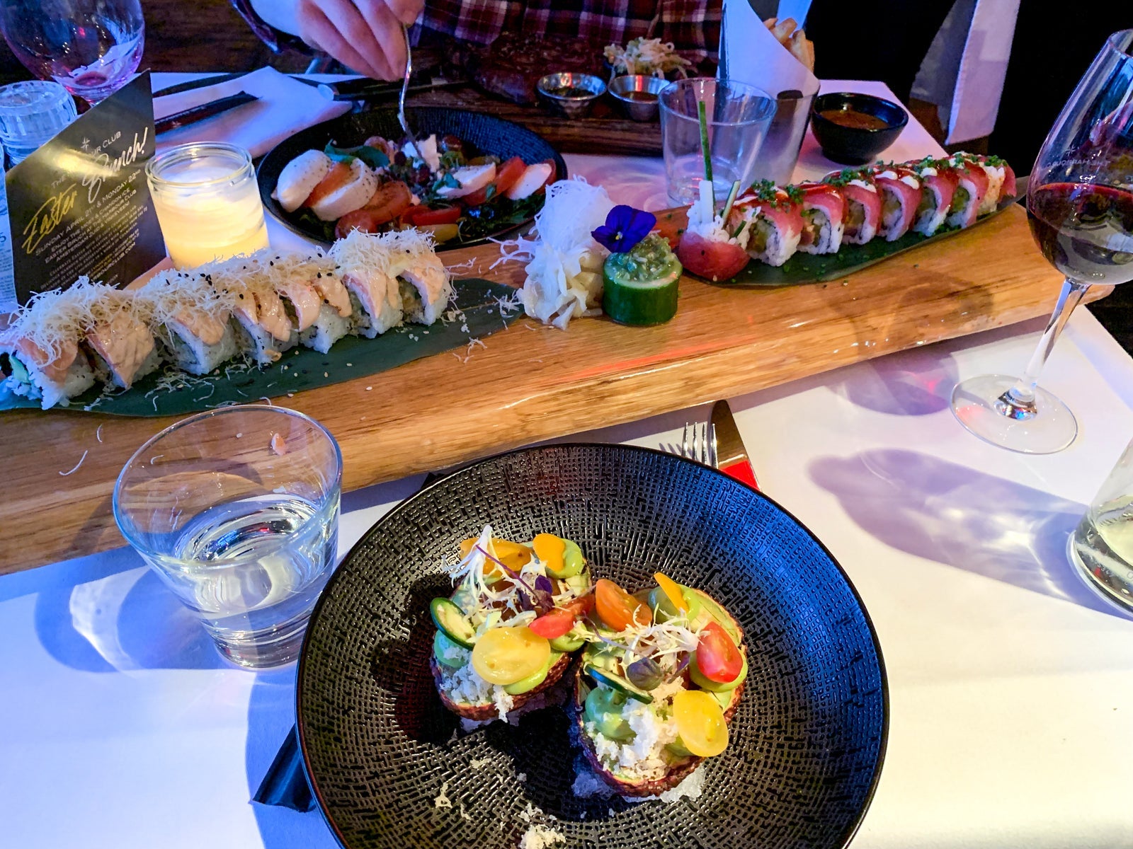 I didn't realize that the avocado was on a bed of salt (it was very granular and looked like ice), so I ended up ruining a few pieces of mozzarella by dropping them on my plate. I ordered two sushi rolls for my main course, which were much larger than expected but incredibly fresh.