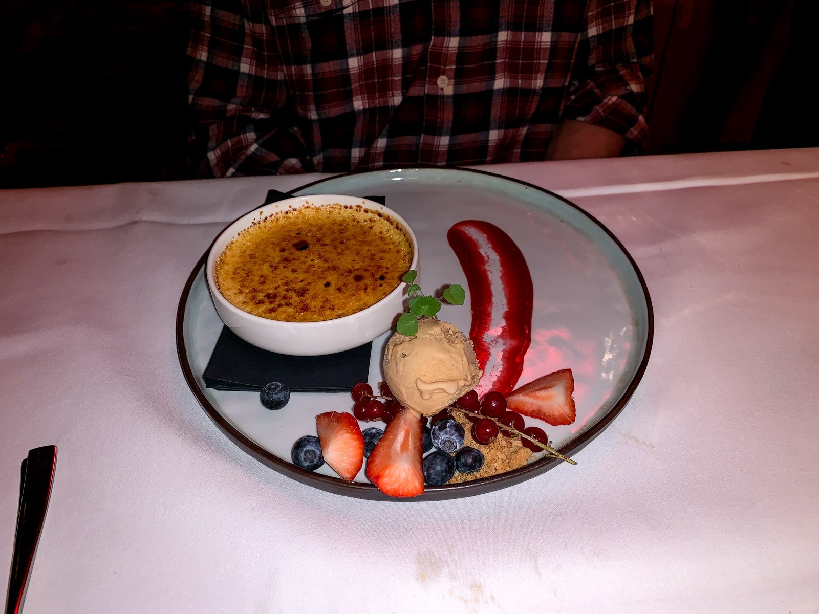 We decided to share a tiramisu for dessert, which came with a side of ice cream and strawberry coulis.