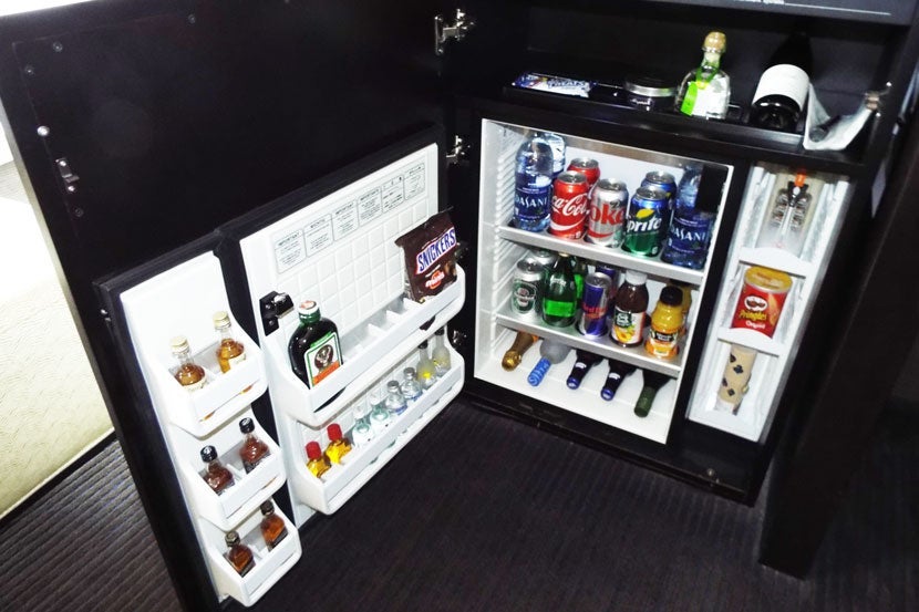 The mini-bar housed chocolates, chips, non-alcoholic beverages and some small alcoholic beverages.