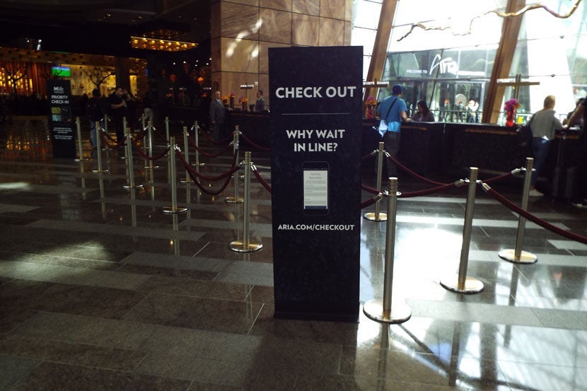 An alternative would have been to use mobile check-in, which you don't actually have to do beforehand. The moment I spotted the long line, I logged onto the Aria's website and started the process that way. I then walked up to the counter to present my credentials, received my keys and was on my way. This took me a grand total of 10 minutes.