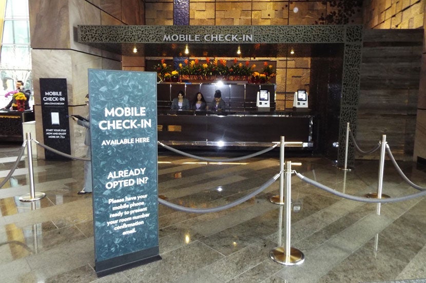 As an M Life Platinum member (which, as I mentioned earlier, I'd gotten through my Hyatt Diamond status at the time), I had the ability to check in at a special desk — unfortunately, I couldn't find it in time, since it was hidden at the end of the main check-in counters. I was later told that valet parking was free because of my status, a perk which saved me $18 a night.