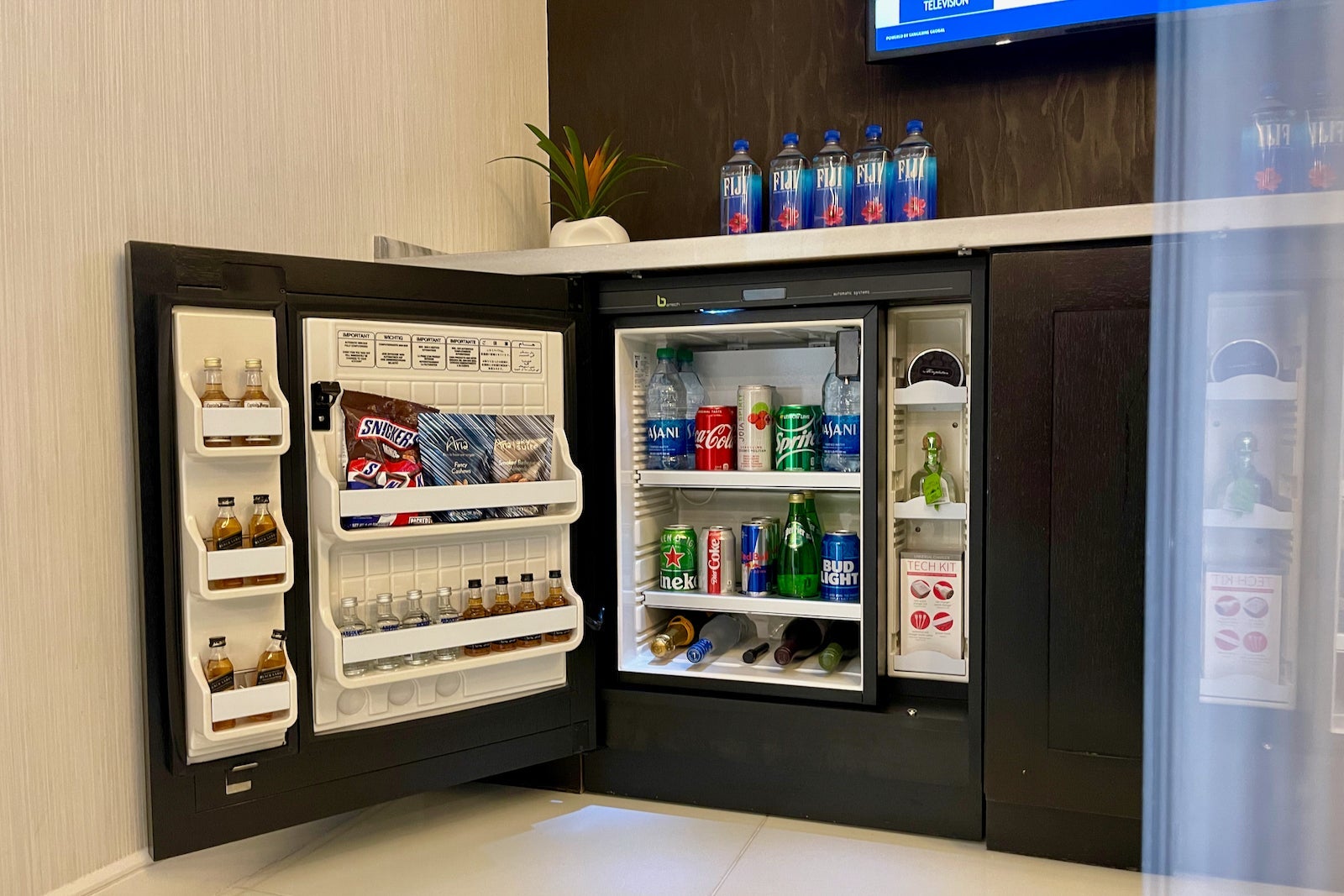 Here you'll find an assortment of bottled soft drinks, including Pellegrino, as well as coffee and tea machines.