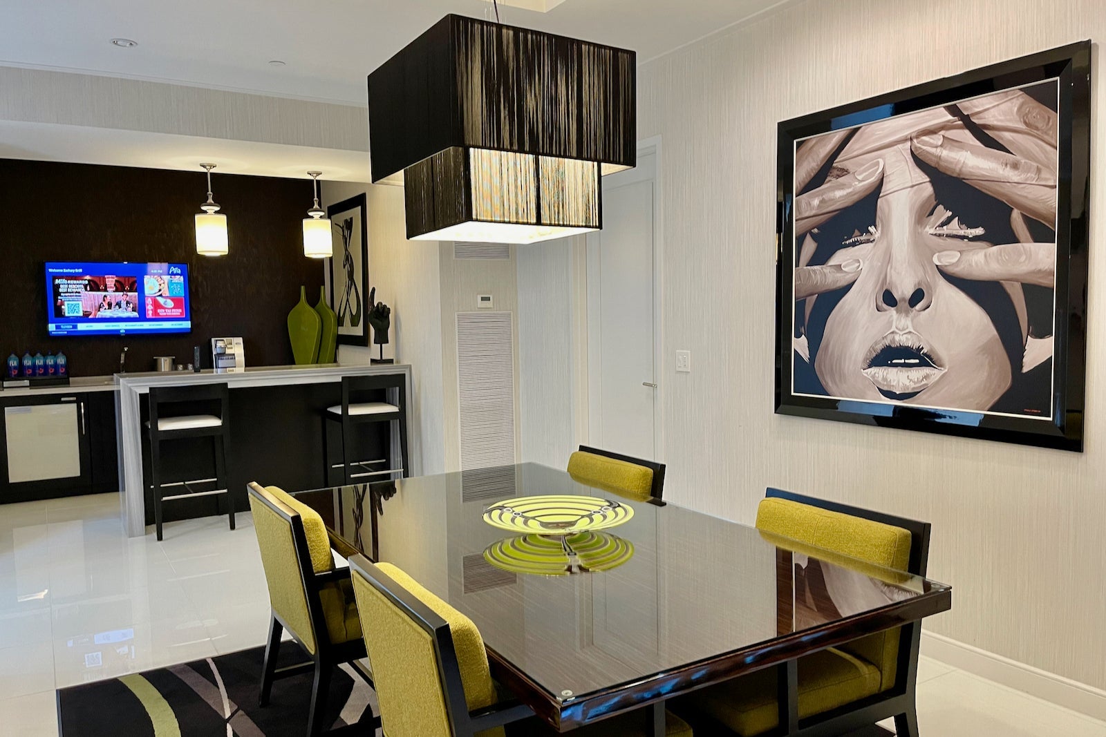 The 1,050-square-foot penthouse was decked out with three individual rooms: a large living room, a four-person dining table with a wet bar and an inviting bedroom with an en-suite bathroom.