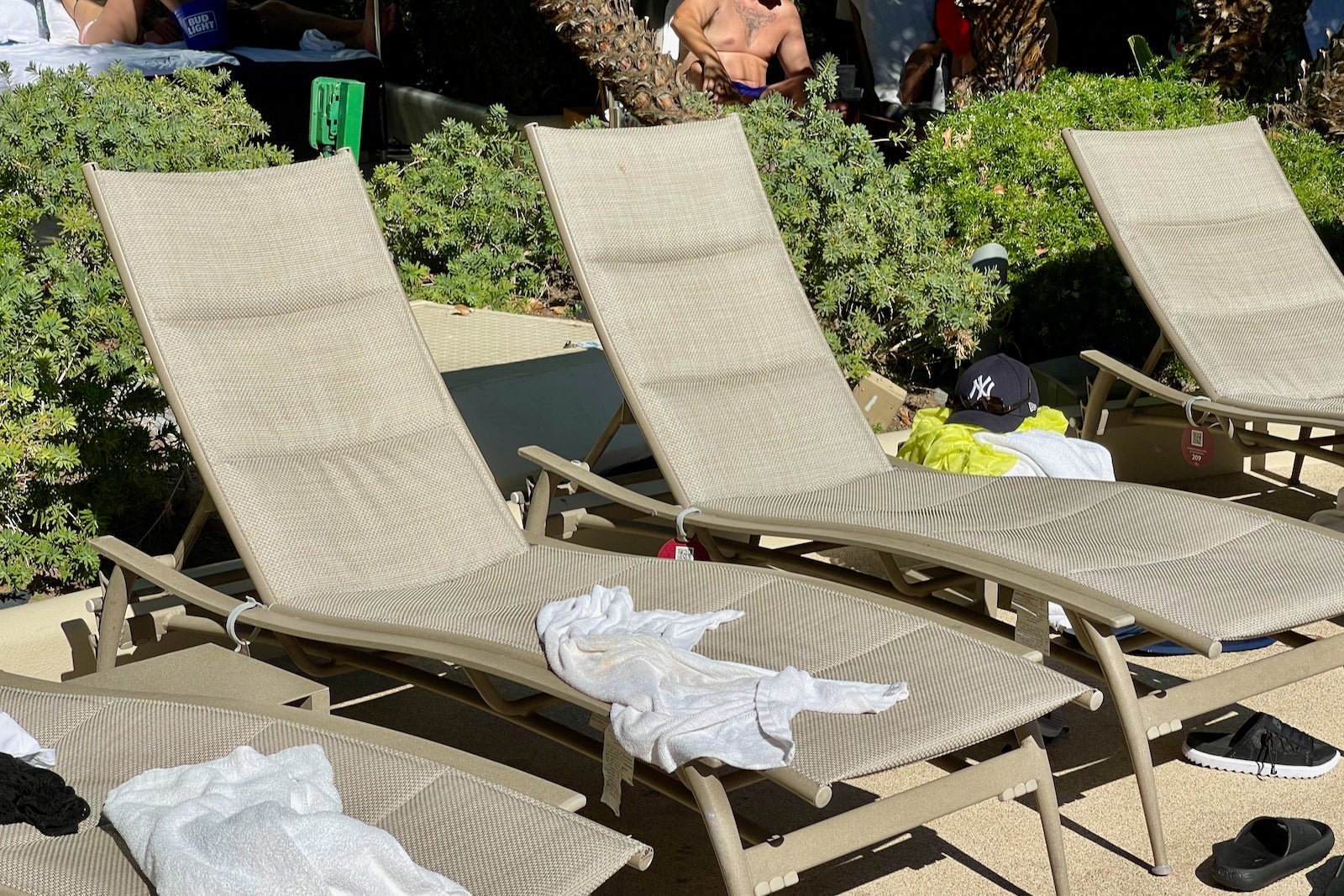 Finding a place to sit was nearly impossible since so many of the chaise loungers had already been reserved with towels and other personal belongings.