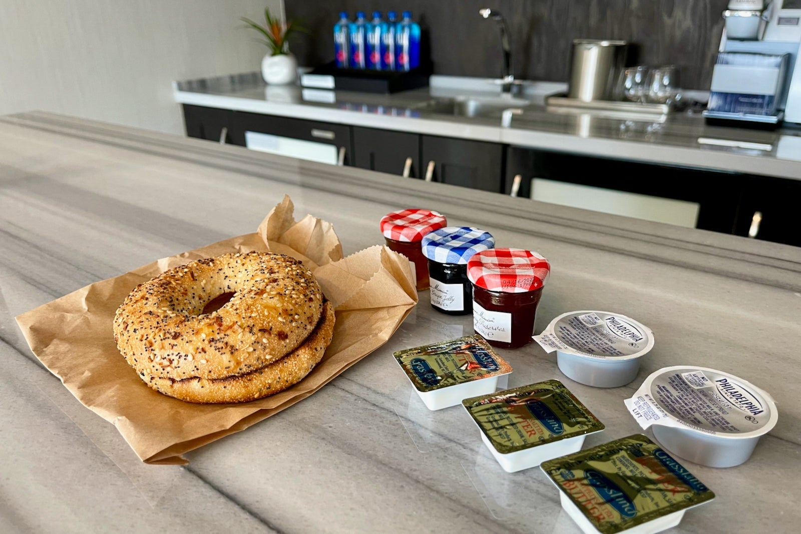 At 1:10 p.m., my doorbell rang and room service had a giant shopping bag. Inside was a $20 bagel. And some jam. OK, it was really an $8 bagel, but the random fees brought it up to $20.