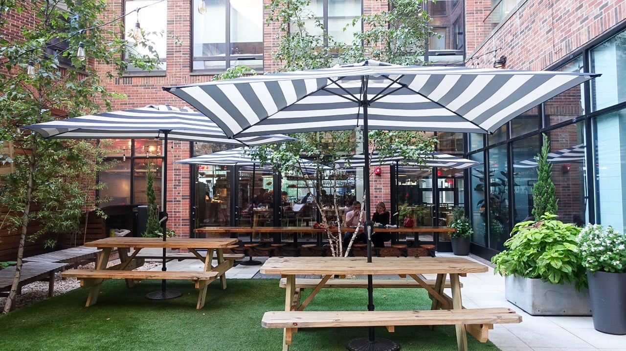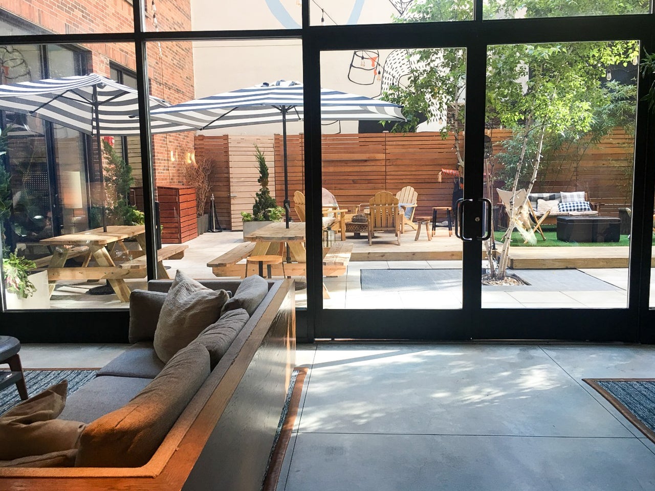 During my two-night stay, I was able to spend a little bit of time in the lobby area, making sure to check out the outdoor area called Camp Arlo, which often hosts events during nice weather. This was probably the first time I'd ever seen a space like this in any New York City hotel, and it was really cool, with picnic tables, plants and umbrellas.