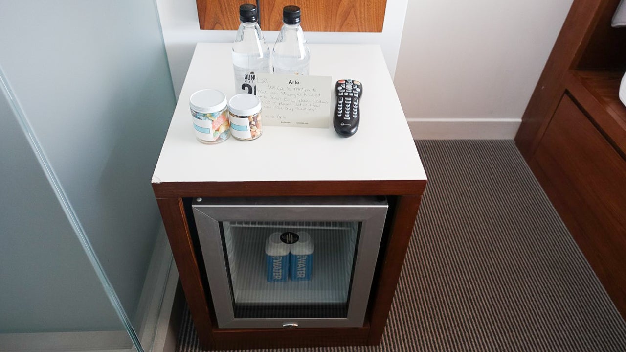 My VIP Hotels.com status also awarded me a small gift from Dylan's Candy Bar (gummies and nuts, no Reese's, unfortunately) and two extra water bottles. Of course, I ate them in bed and lost a couple to the cracks — there really wasn't an ideal eating space in the room. There's really nothing like waking up with a peanut stuck in your hair.