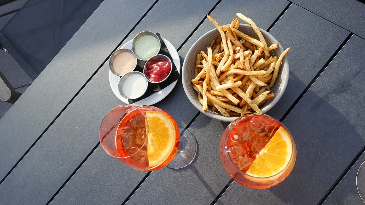 I also went up to the rooftop with friends, sipping an Aperol spritz ($18, with no discount even if you paid your urban fee) and nibbling on delicious french fries.