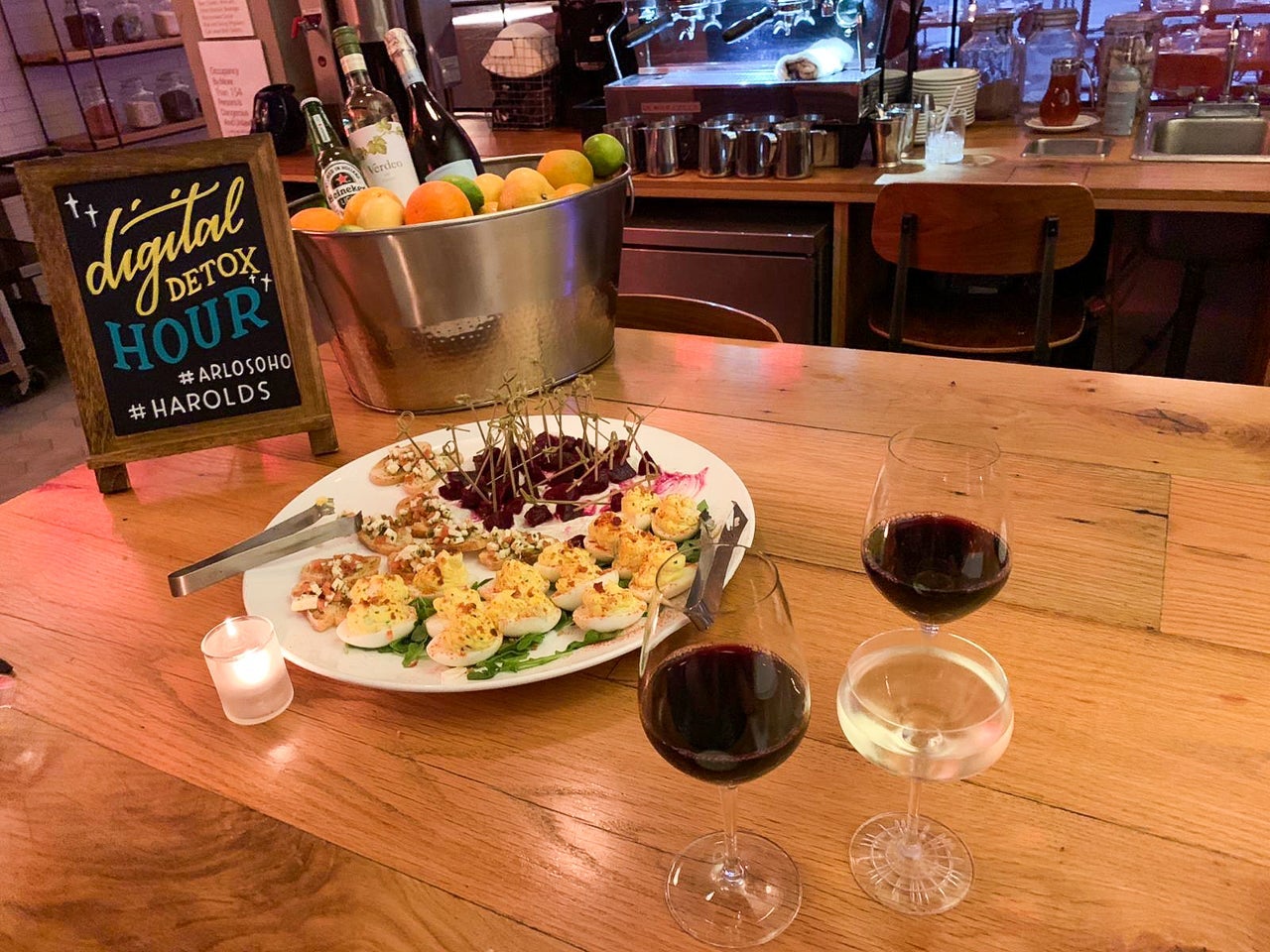 I also tested out the complimentary happy hour from 5:30pm to 7pm. The hotel called it a digital detox — everyone was still on their phones, of course, but whatever.