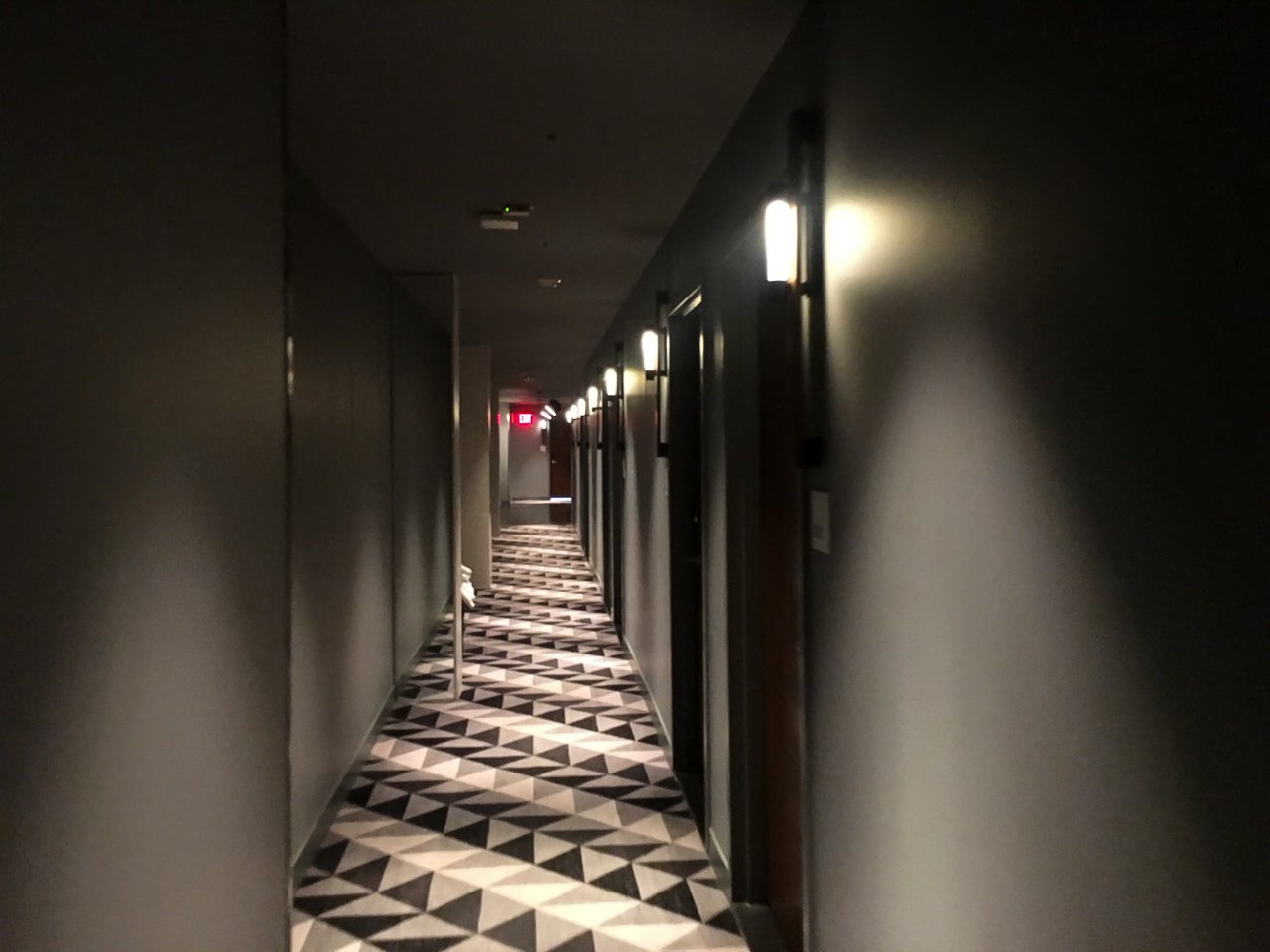 I then went to the elevators and up to the eighth floor. My room was 840, and the dazzling geometric pattern in the hallway carpeting made me feel like I was in a maze of sorts.