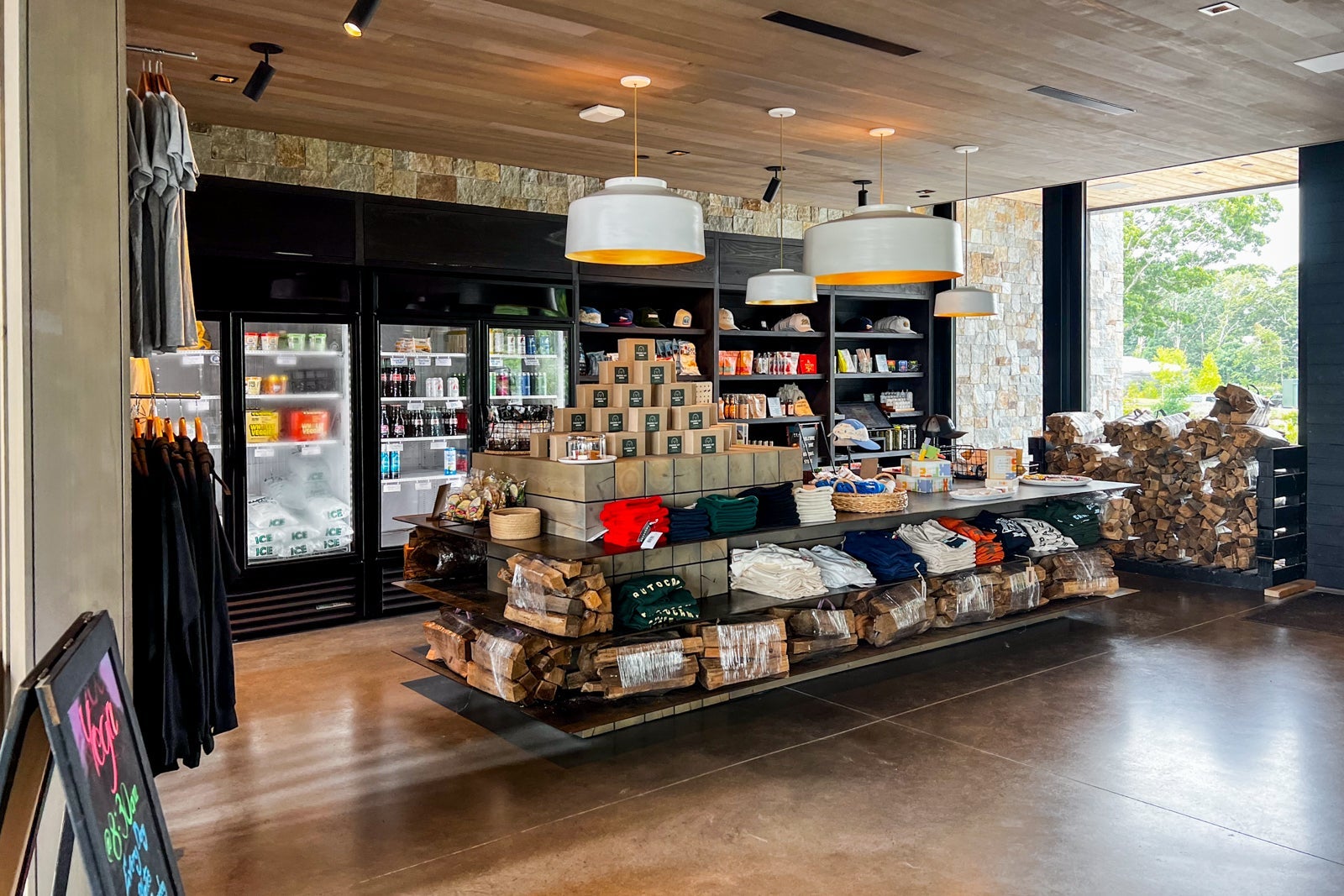 As part of the camping experience, AutoCamp Cape Cod encourages guests to prepare their own meals at the campsite. The resort's Kitchen + General Store stocks a variety of food items, from a range of snacks to ingredients for a more substantial meal. However, on-site dining options are otherwise limited to a few items that can be heated and served quickly, such as chicken tenders and pretzels, since there is no full-service restaurant or bar.