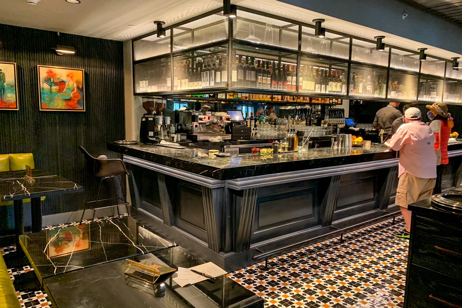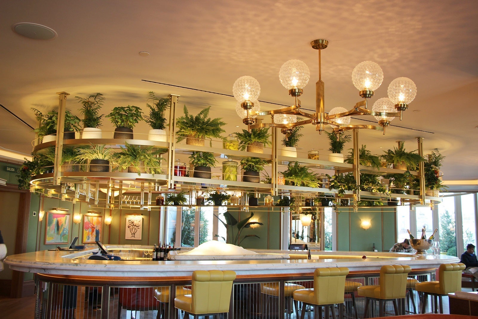 The lobby is a breath of elegance, outfitted with fresh, Mediterranean-inspired flowers, complete with socially-distanced sofas and guests sipping wine or nibbling macarons. The restored stained glass ceiling is a luminous focal point. This glorious piece of art is just one of the 16,000 historical artifacts that were taken out of the building while it was gutted and restored to perfection, then brought back into the hotel, giving the now-contemporary space an added dose of vintage character.