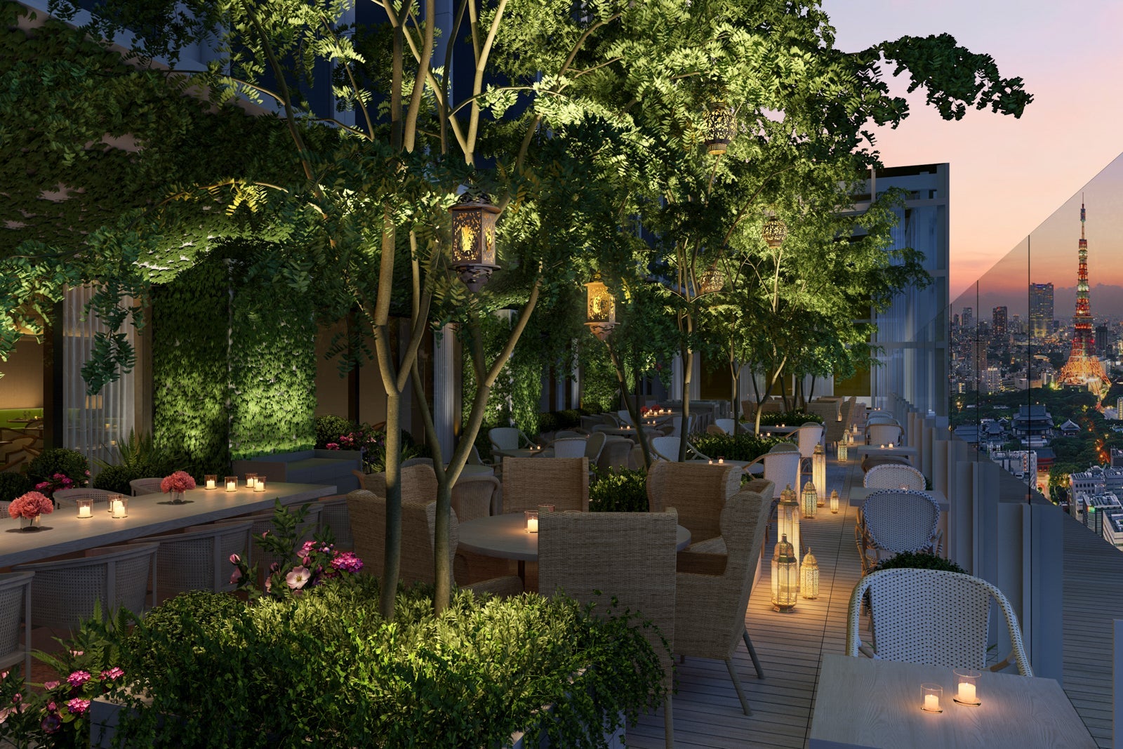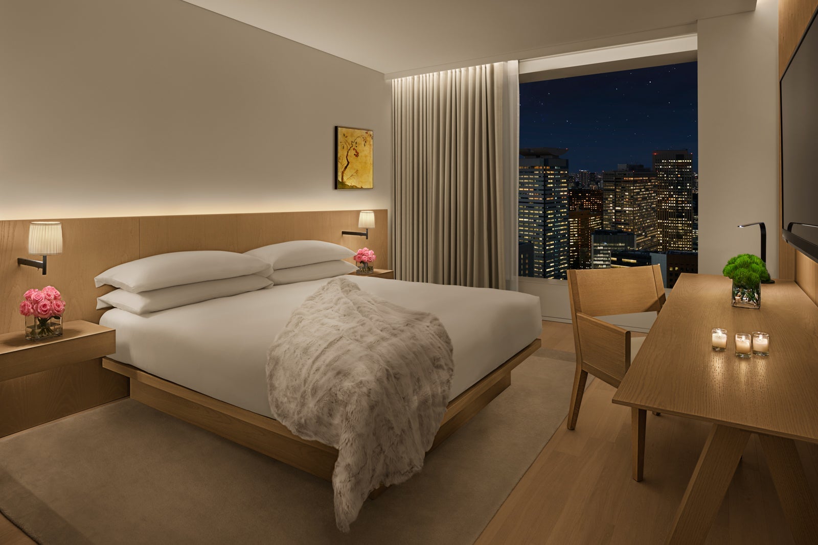 The hotel has 206 guest rooms — 15 of which have outdoor terraces with jaw-dropping views of the seemingly endless Tokyo skyline — along with three restaurants and bars, including a rooftop terrace, a full-service spa and fitness center and more.