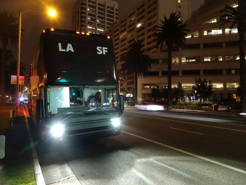 I finally had to take a prescription sleeping pill, which must have kicked in at some point because I awoke unprompted at 7:20am, feeling surprisingly refreshed. I made my way downstairs, where the attendant told me we'd been at our arrival spot in San Francisco since 6:00am. I appreciated that the attendants didn't kick us out right away — in fact, I wasn't even the last passenger still on the bus!