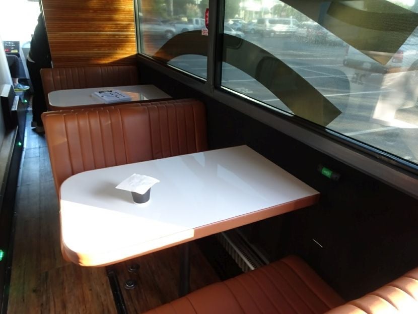 The two staff members on the bus were attentive, excited to show off Cabin's features and offered me "sleepy" tea. One attendant stays in the downstairs common lounge area — home to two booths and a lavatory — throughout the trip.