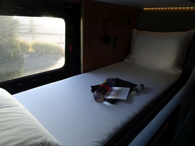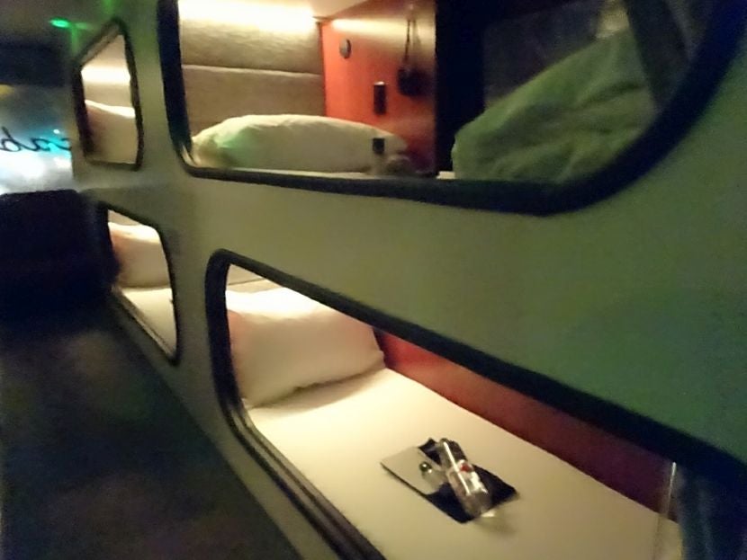 Check-in began right away and was as simple as giving my name and showing my confirmation e-mail. With no bags to check into the storage area, I was the first on board and within seconds, had climbed the six steps up to the top deck, where I had my pick of sleeping pods — Cabin doesn't allow you to reserve a specific one ahead of time.