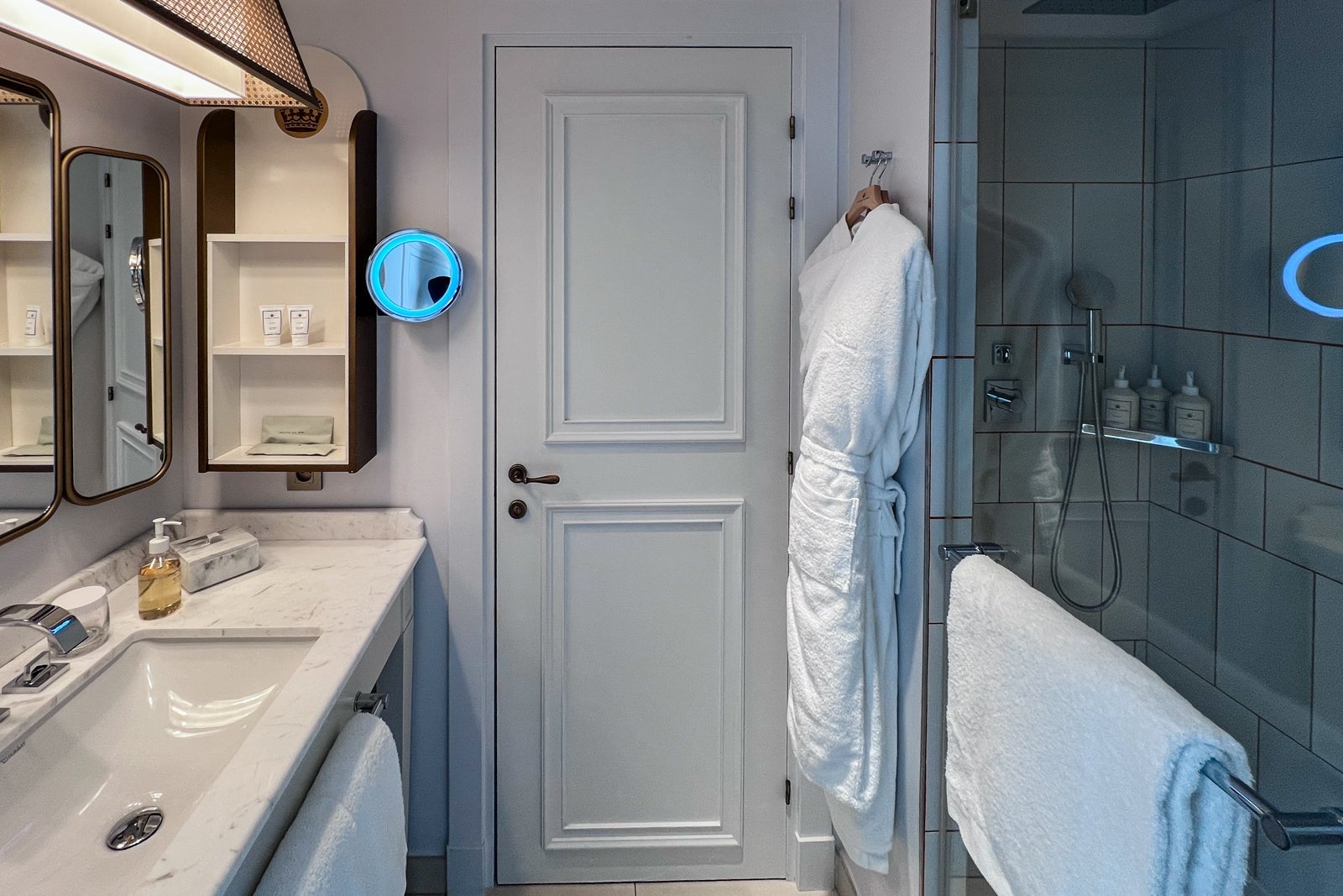 The cozy bathroom was perfect for a solo traveler and featured a single vanity and walk-in rain shower. Housekeeping came twice daily, including evening turndown service, and I was amazed at how prompt service was for the duration of my stay, from luggage delivery and pick-up to room service — French hospitality at its finest.