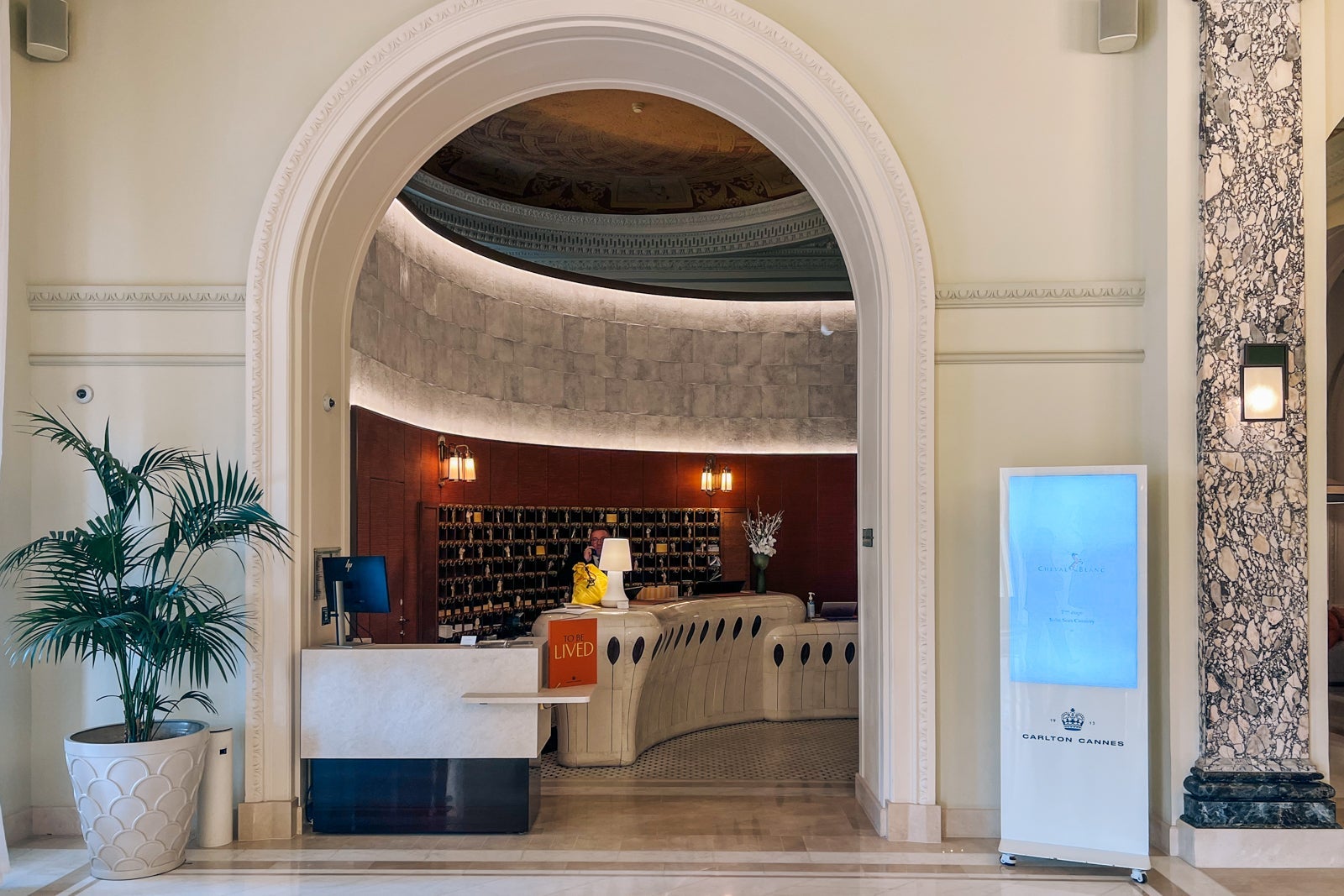 One might assume a global hotel conference of travel experts might be a hotel's worst nightmare — no matter how luxurious the property might be. But the Carlton Cannes team was as cool and crisp as a fresh salade nicoise as they welcomed me upon arrival. Porters take luggage at the front door to whisk up to your room, and another team member is on hand to guide you past the ornamental historic check-in desk to the actual reception tucked away behind the soaring lobby.