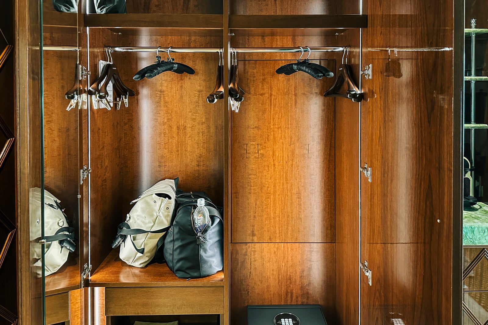 In the room's small entryway, a minibar area had a tea kettle with various tea options, a Nespresso machine, plenty of glassware, and a minifridge with local beers, spirits and the other usual bar fare. One nice surprise was some complimentary Italian snacks, like mixed nuts and sun-dried peppers.