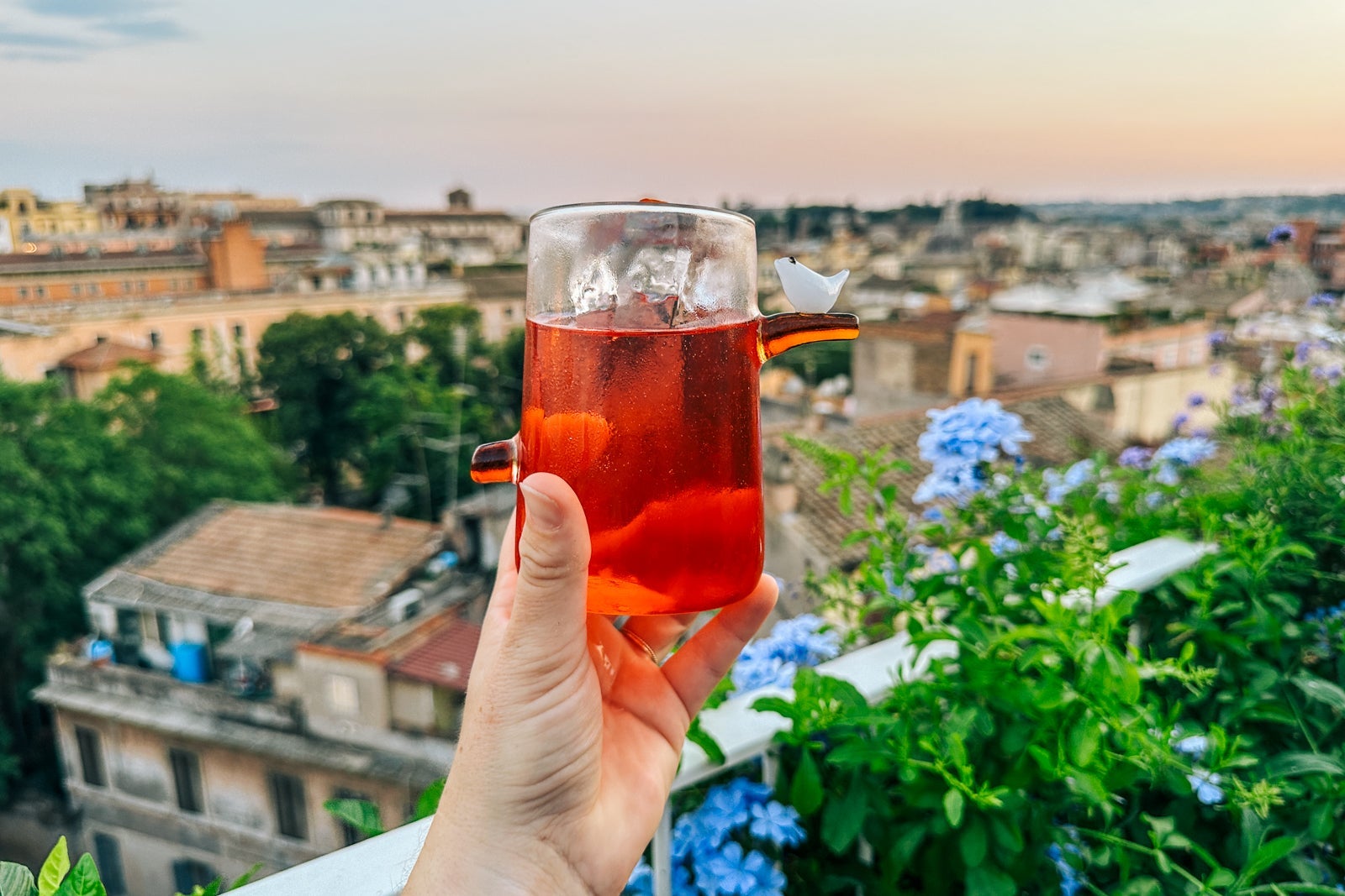- The rooftop bar provides picture-perfect views of the Eternal City.