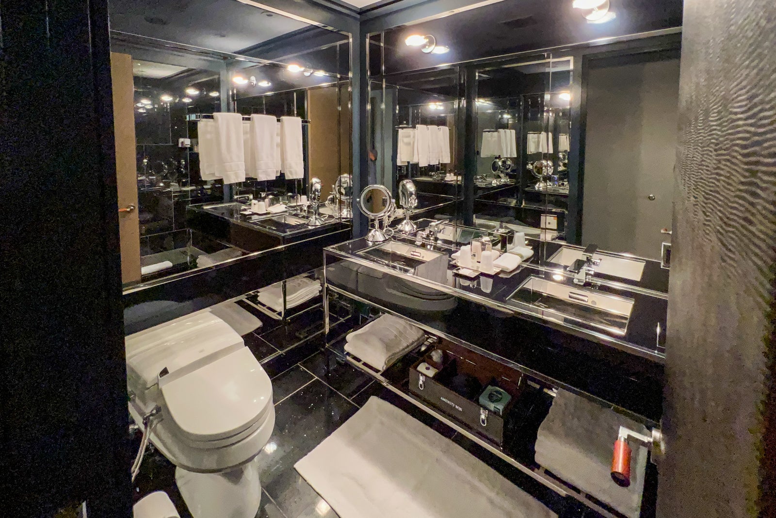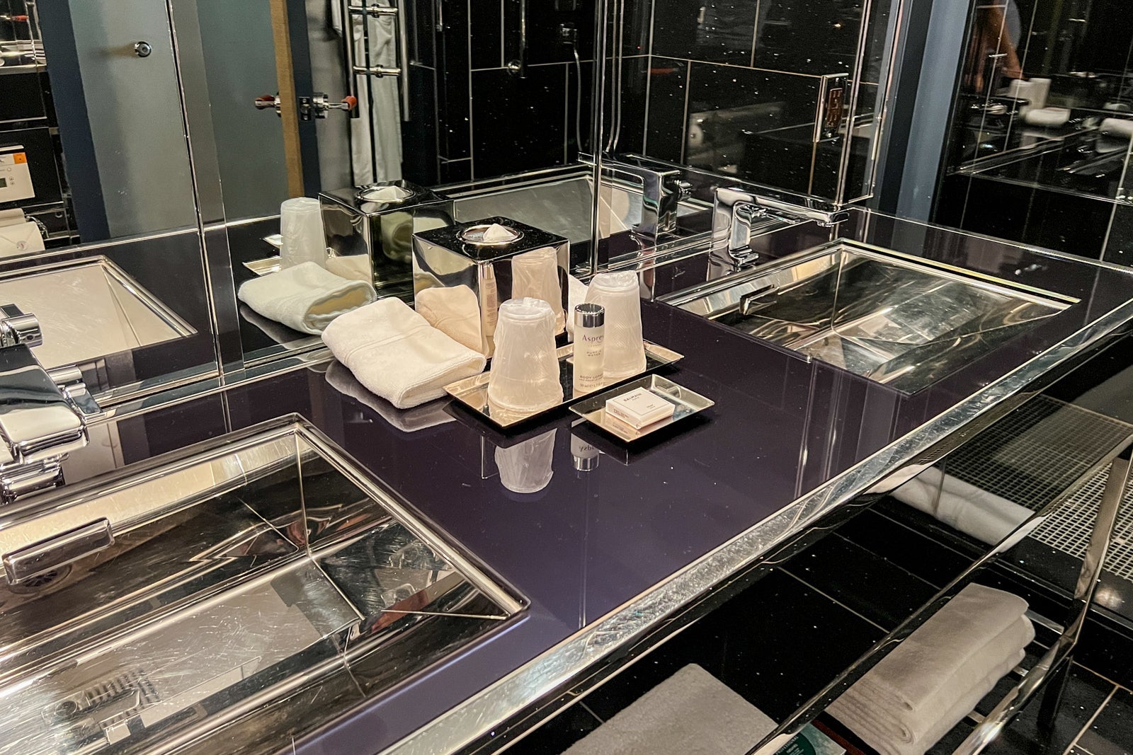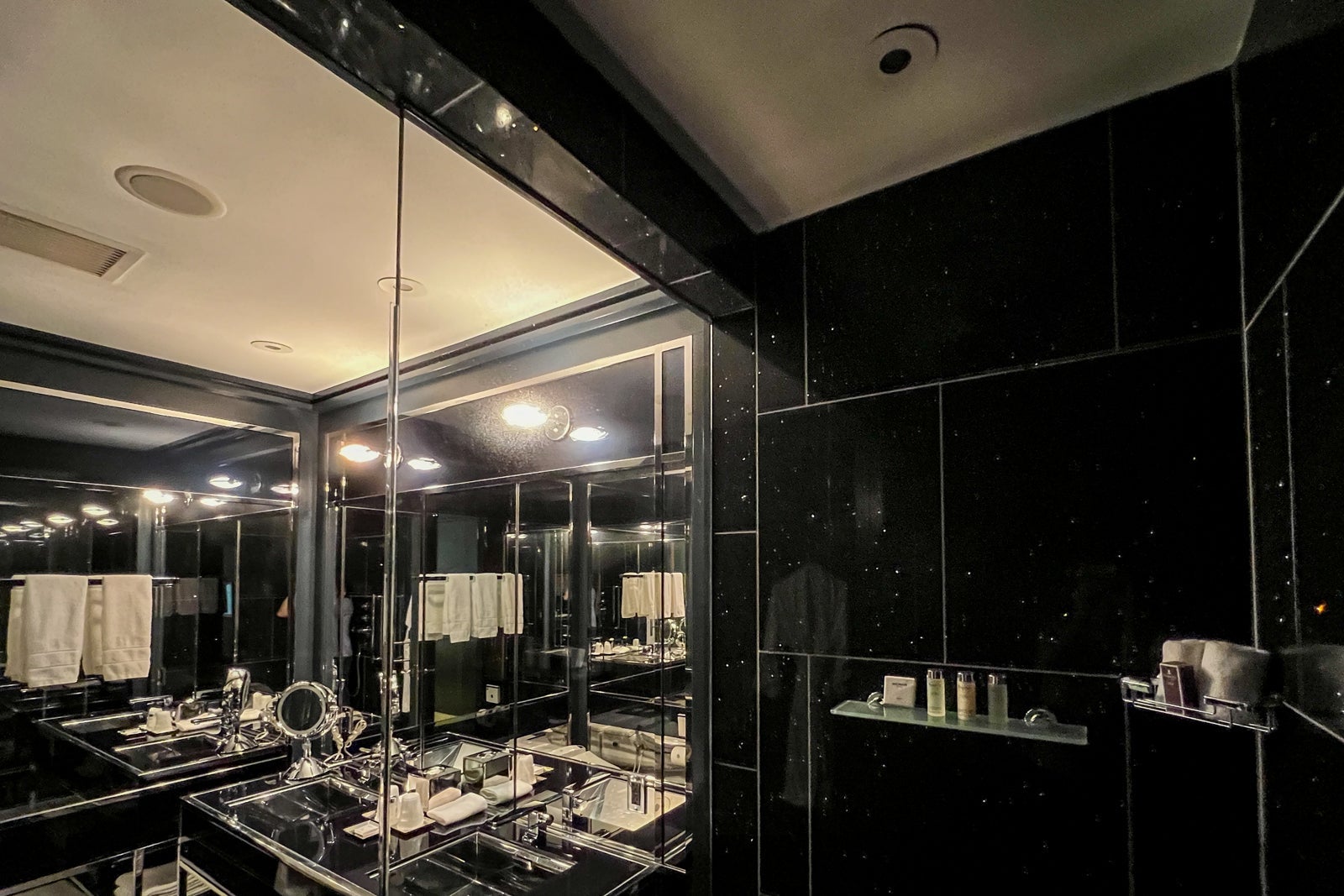 No room, let alone a bathroom, should have as many mirrored spaces as this one. Plus, the tiles had sparkling specks in them, adding even more reflective surfaces to the room. While the hotel is only 12 years old, the bathrooms felt like a flashback to the 1970s and the age of Studio 54. (At least there wasn't a disco ball?)
