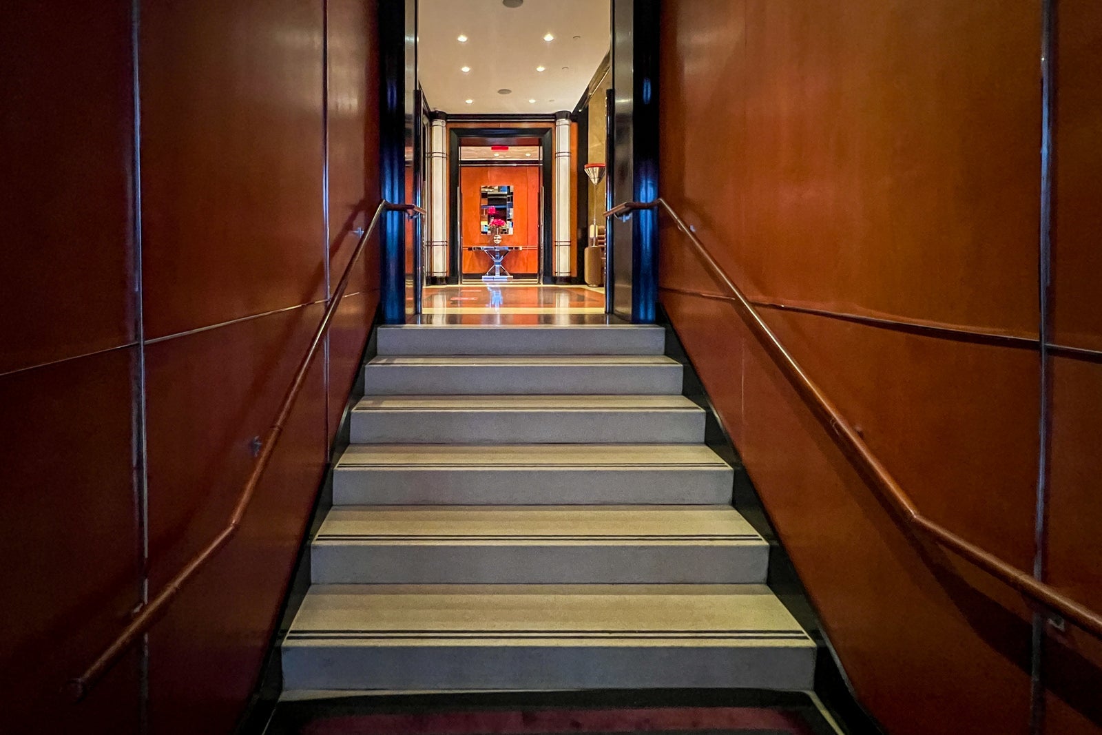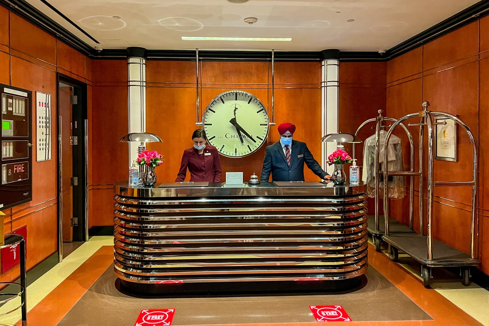 When I arrived at the hotel around 3 p.m., two doormen were waiting to assist with luggage — a treat to see in this age of limited staffing. A quick walk up six stairs and I was at the front desk.