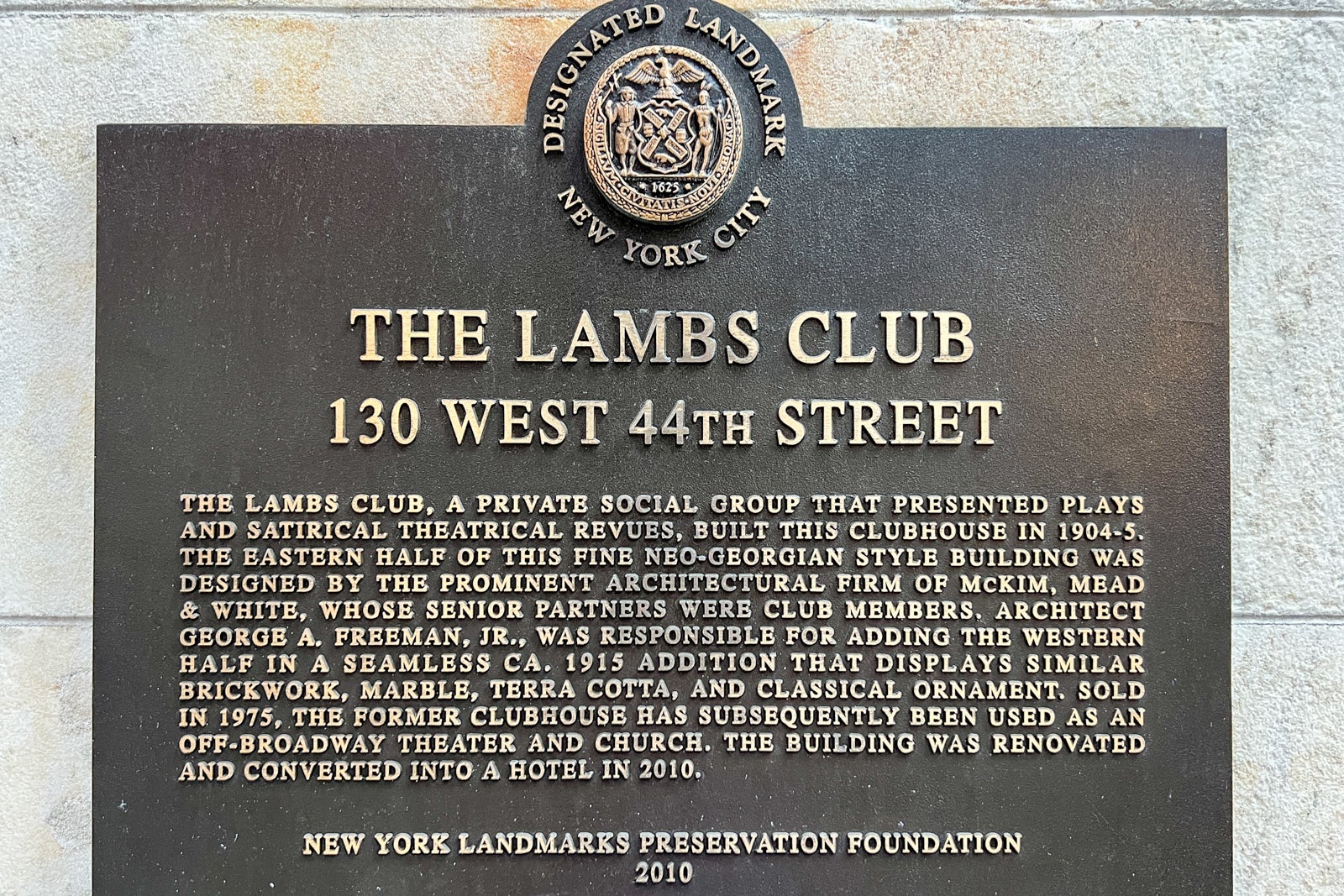 The hotel sits in a 1905 building designed by Stanford White, part of the legendary architecture trio McKim, Mead & White. It initially opened as Lambs, a professional theater club, near the heart of Broadway. In 2010, the building was renovated and opened as The Chatwal, named after Sant Singh Chatwal, the founder of Dream Hotel Group.
