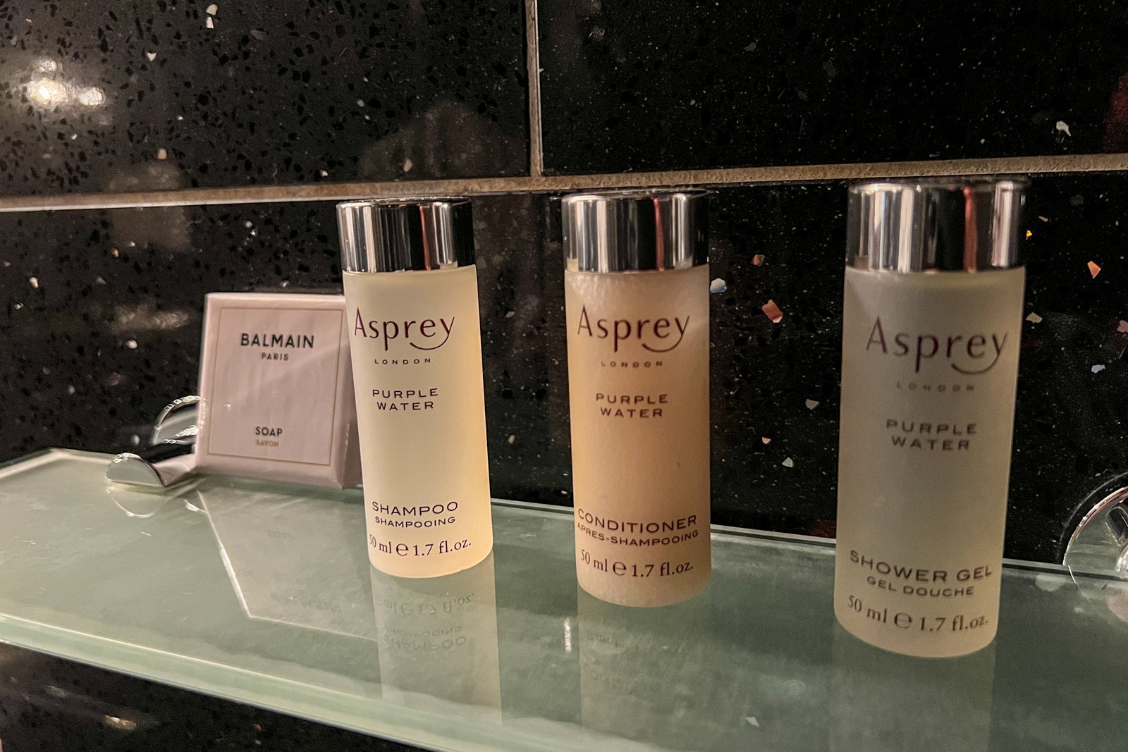 The Asprey bath products were nice, but I found it odd to see plastic cups in the bathroom — especially when paying these rates. Would it be too much to ask for nicer glass ones? Perhaps this was a pandemic-era cut that hasn't been reversed.