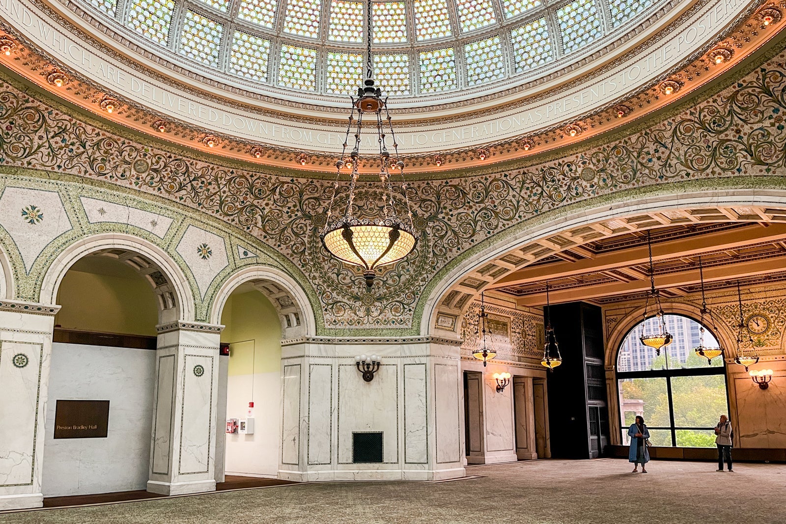 My Uber driver dropped me off at the hotel's side entrance on East Madison Street, so I missed out on being greeted by the expansive space with mosaic floors, marble columns and a grand staircase you see when you come through the ground-floor Michigan Avenue entrance. Instead, I traversed a dark hallway through the Game Room to the check-in area on the second floor.