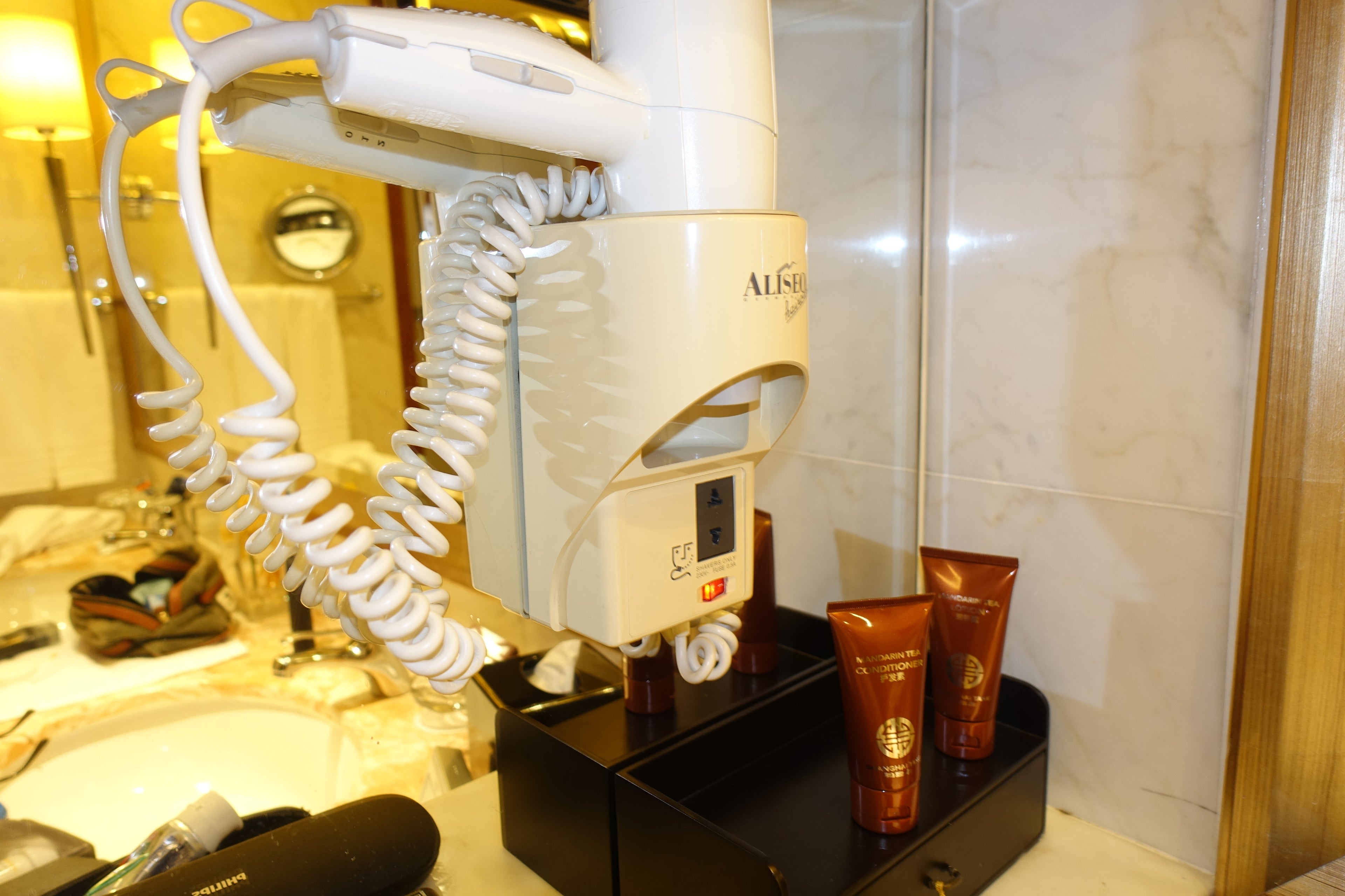 The hair dryer looked a little 1990s and was hooked onto the wall, but I didn't give it a try.