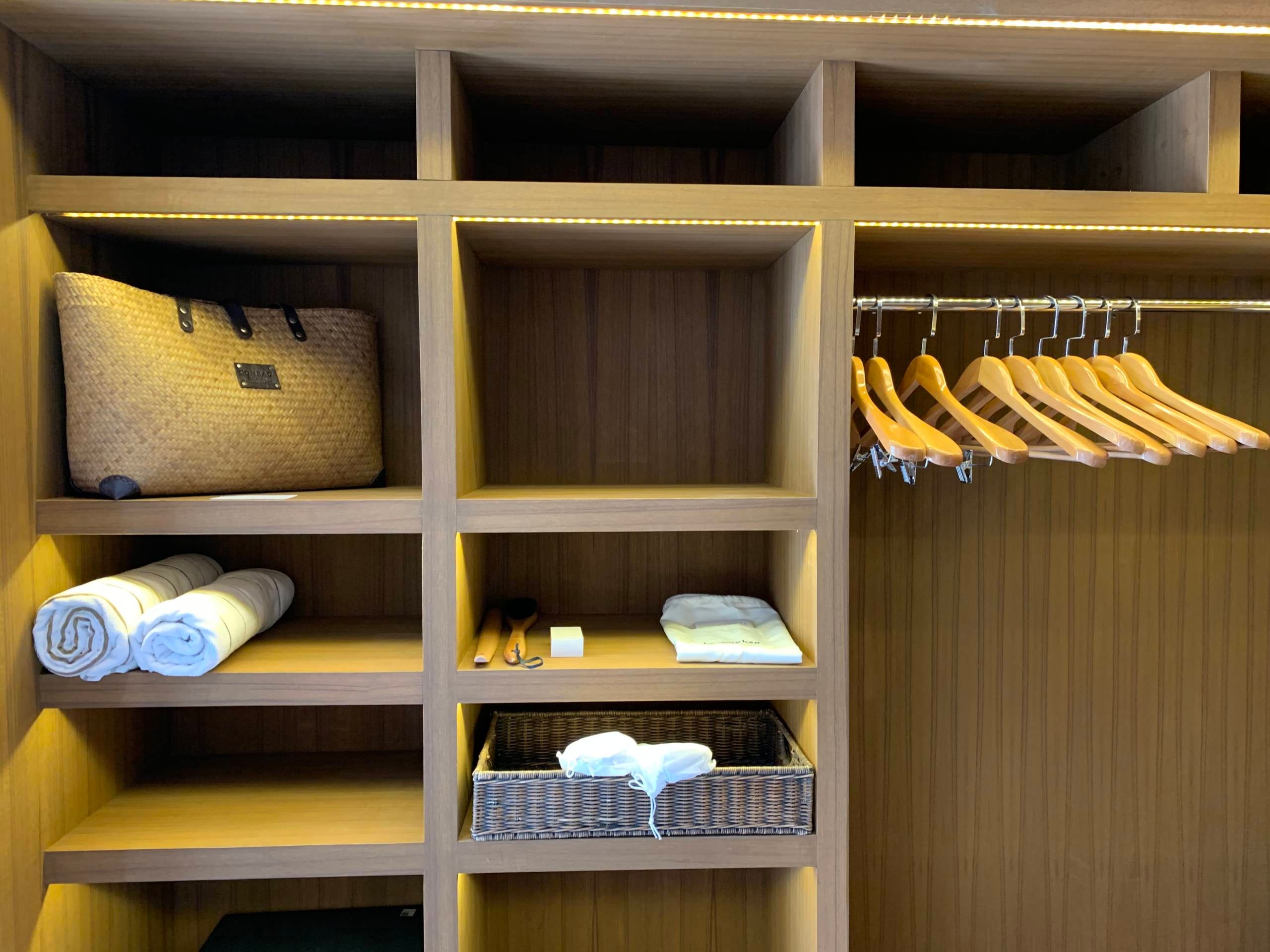 Although I'm not big into products, they smelled nice and weren't overbearing. The closet was well-appointed, with a robe and slippers. A note was attached to a chic beach bag saying if I wanted one, they were available for purchase in the gift shop, but I assume I could have used it during my stay if I had wanted to.