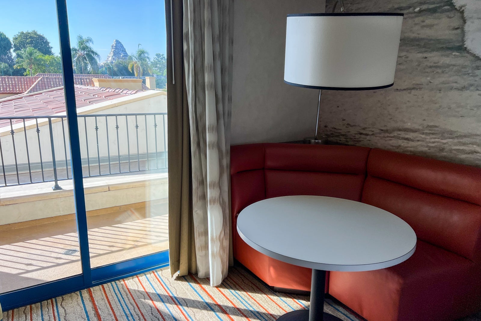 Plus, in the corner of the room, there's a booth that serves as both a great place to work or draw and a clutch spot for in-room meals. This is particularly useful on theme park days when you're scrambling to get the family ready to head out early.