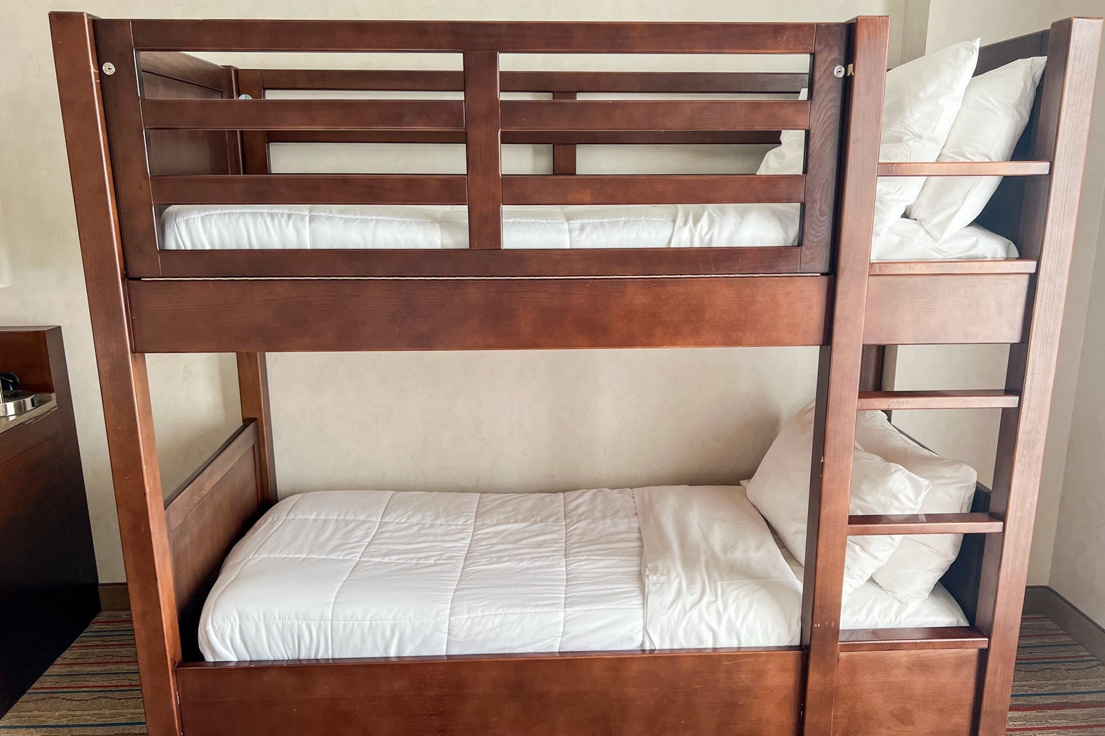 Every room at the Courtyard Anaheim Theme Park Entrance has bunk beds, so each space can comfortably sleep up to six people. That alone may save you from having to pay for two rooms at another hotel and could make the price more palatable.