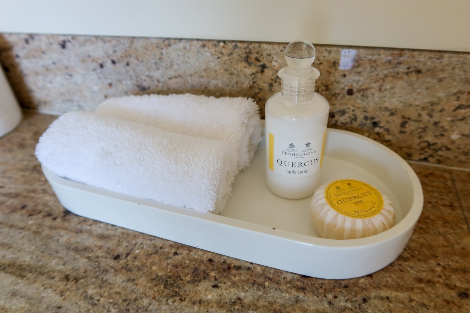 High-end toiletries were provided in individual bottles by Penhaligon's of London.