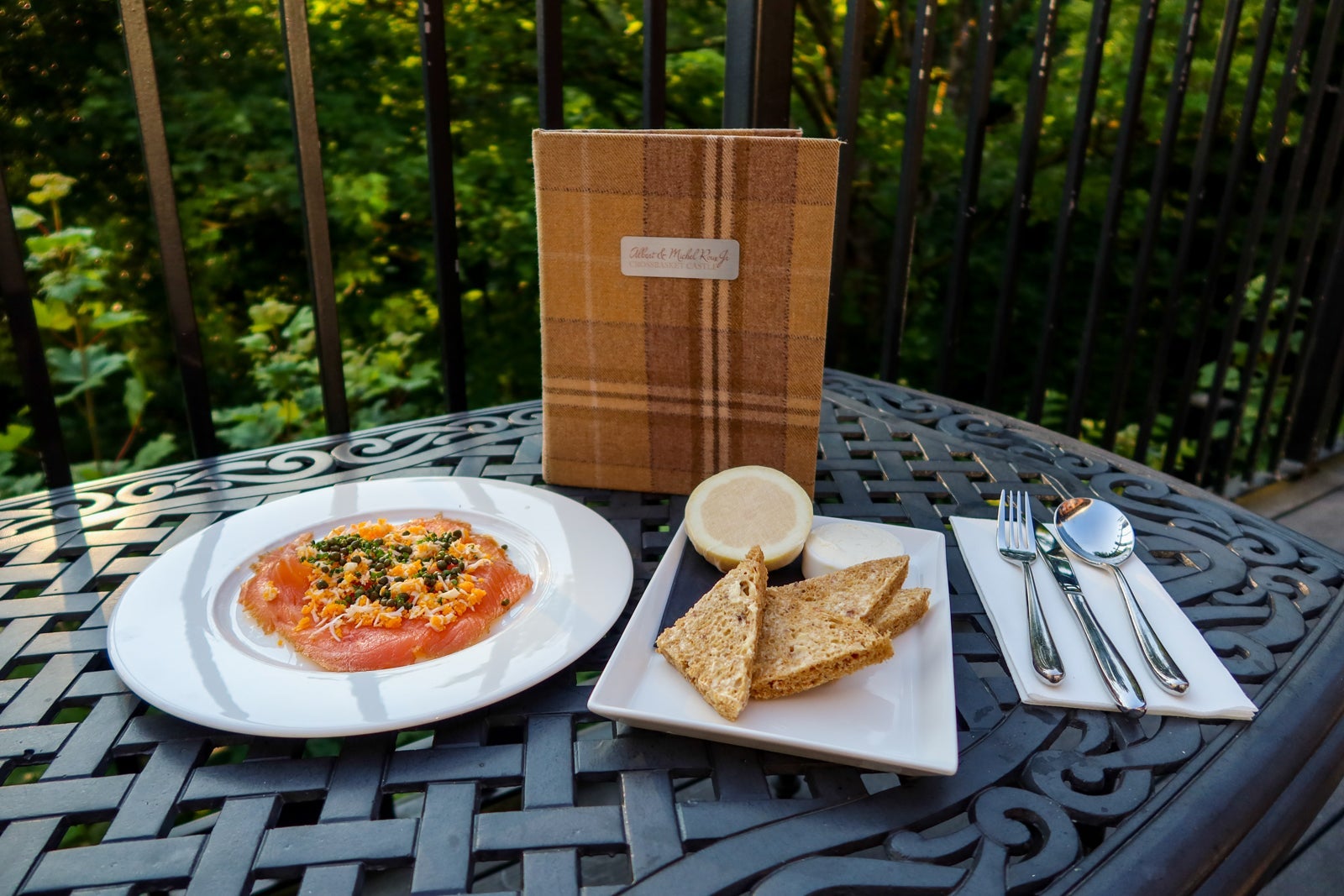 For the second morning, I dutifully filled out my breakfast card and hung it on the doorknob outside the room. This time I chose the full Scottish-cooked breakfast and my partner chose the locally smoked salmon.
